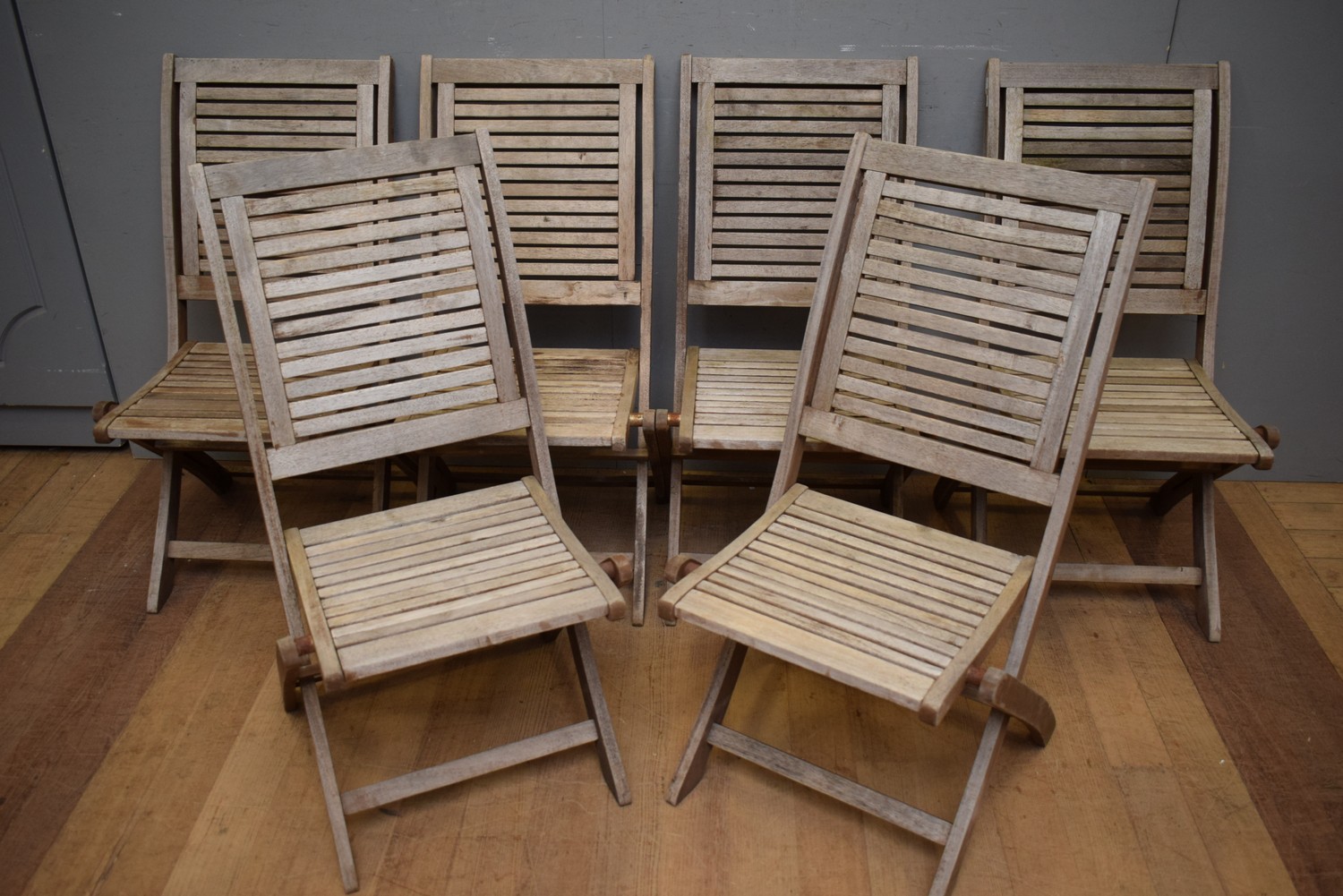 A SET OF SIX TEAK OUTDOOR FOLDING CHAIRS (96H X 51W X 63D CM) (LEONARD JOEL DELIVERY SIZE: LARGE)