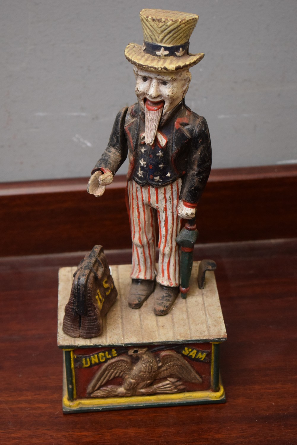 A METAL UNCLE SAM MONEY BOX (30 CM H) (LEONARD JOEL DELIVERY SIZE: SMALL)