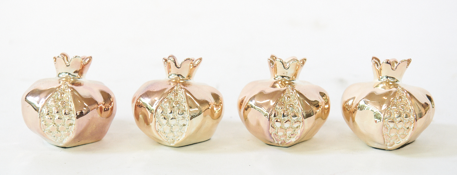 A GROUP OF SILVERED POMEGRANATE SCULPTURES (5.5 CM H), LEONARD JOEL LOCAL DELIVERY SIZE: SMALL