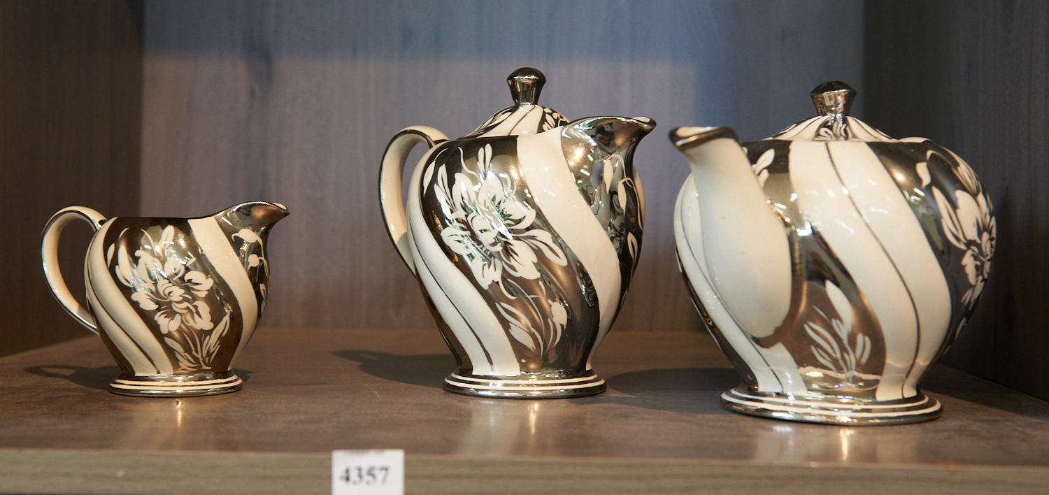 A SADLER COFFEE, TEAPOT AND CREAMER, LEONARD JOEL LOCAL DELIVERY SIZE: SMALL