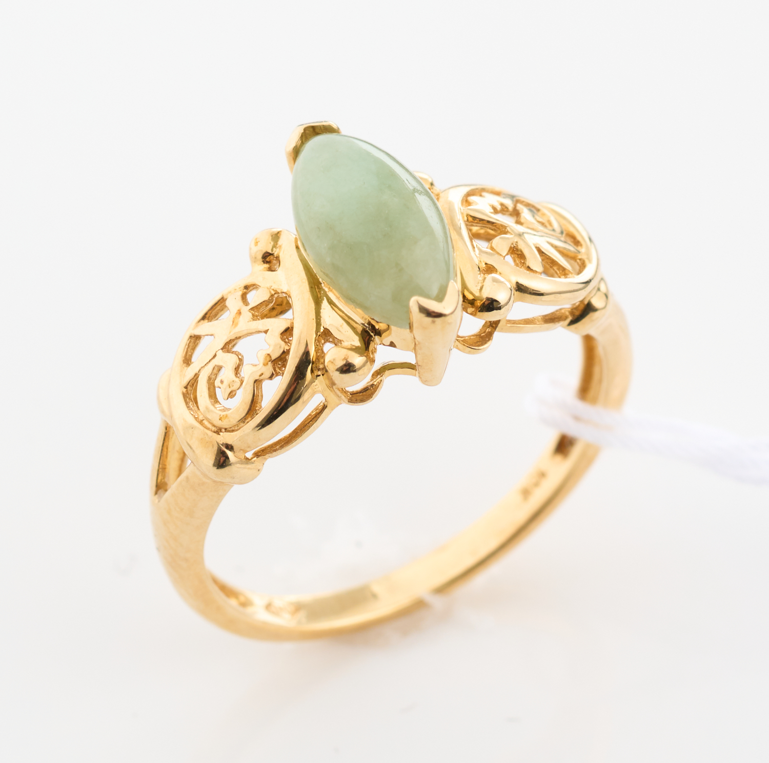 A JADE RING IN 10CT GOLD RING, SIZE N