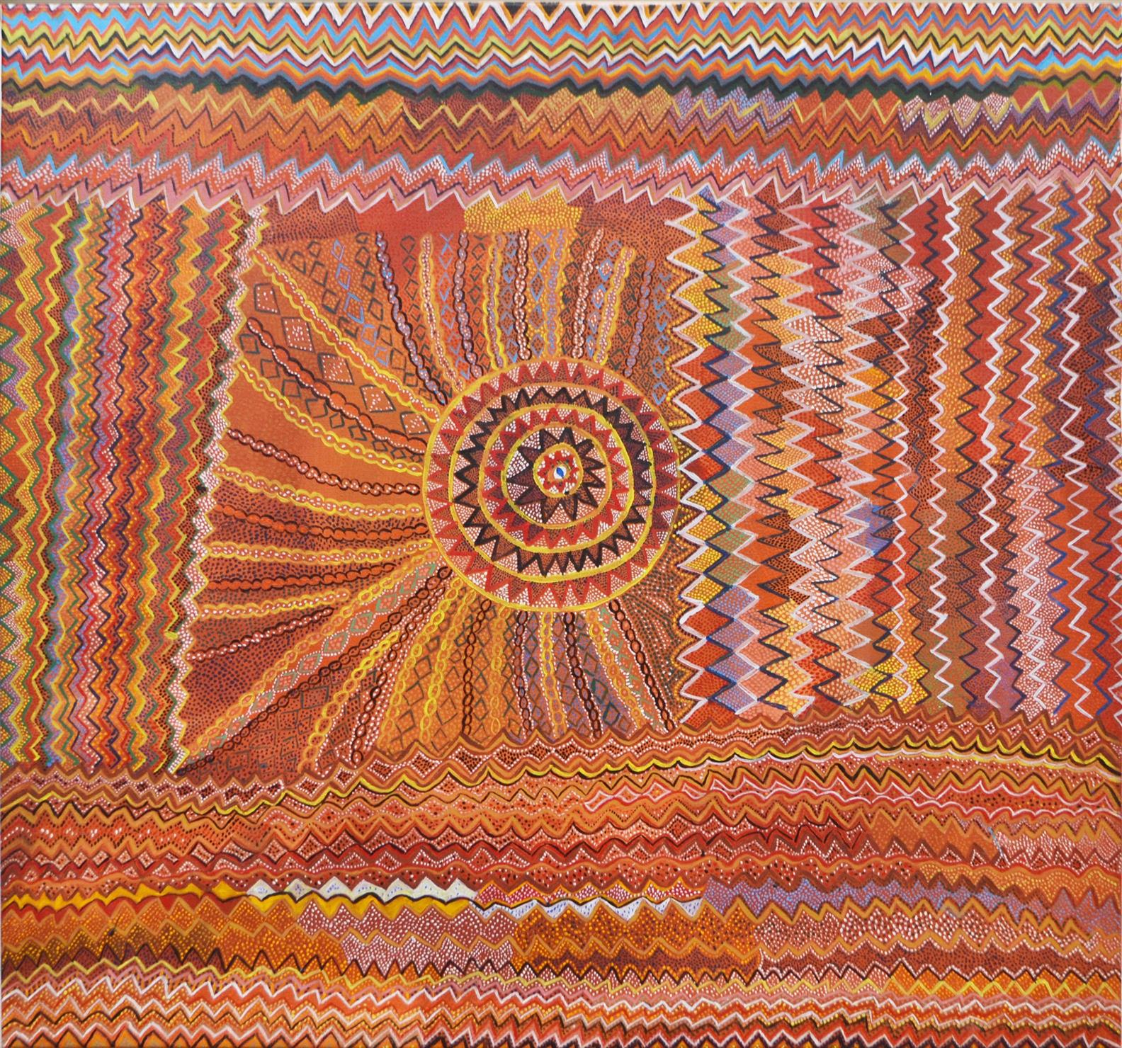 MARGARET KUNDU, SUN MAT, ACRYLIC ON LINEN, 117 X 124CM, LEONARD JOEL DELIVERY SIZE: LARGE