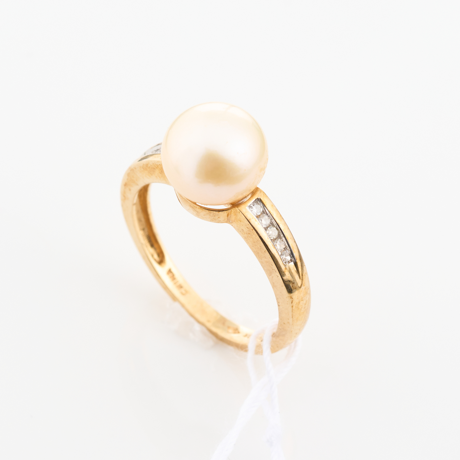 A PEARL AND DIAMOND DRESS RING IN 10CT GOLD, RING SIZE N, 3.2GMS