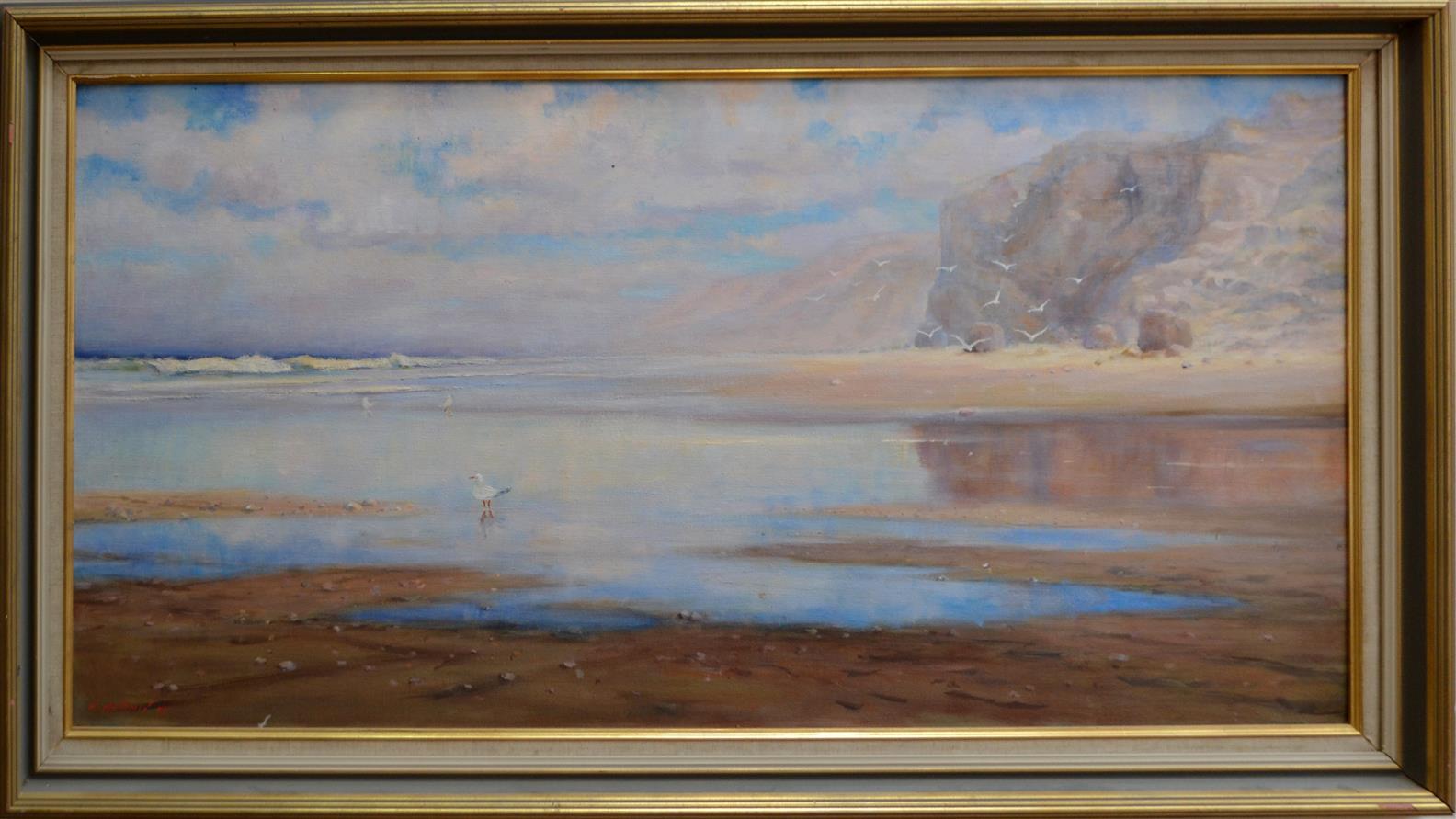 KARLIS MEDNIS, DARBY RIVER, WILSONS PROM, OIL ON BOARD, 60 X 120CM, FRAME SIZE: 75 X 124CM, LEONARD JOEL DELIVERY SIZE: SMALL