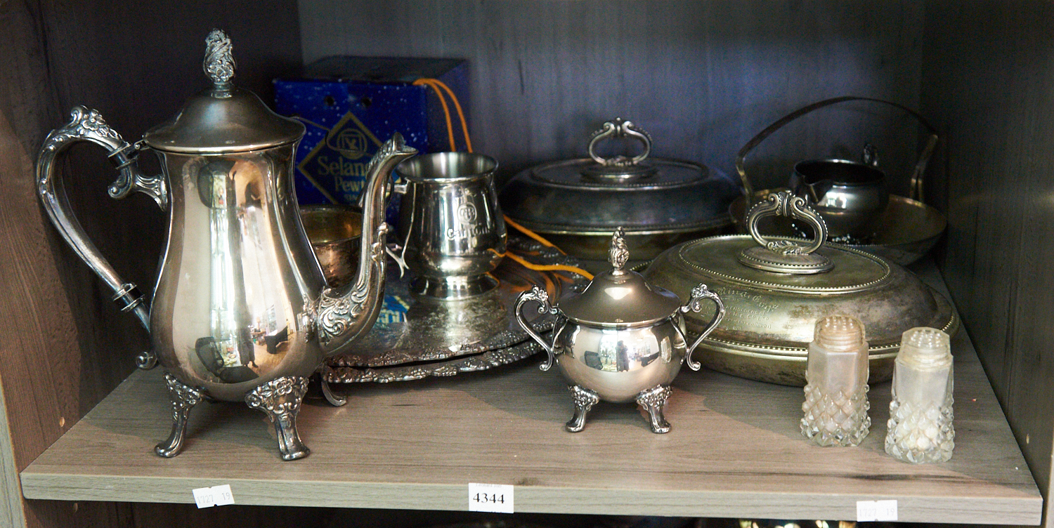 A SHELF OF SILVERPLATE, LEONARD JOEL LOCAL DELIVERY SIZE: SMALL
