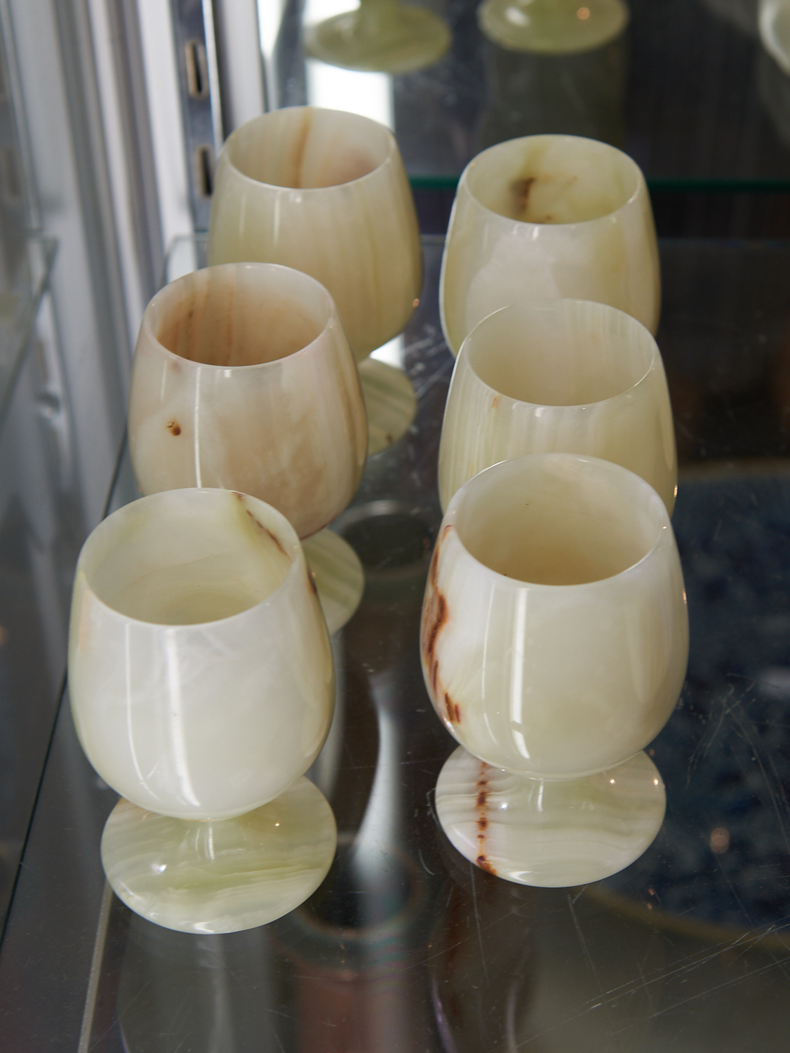 A SET OF HARD STONE GOBLETS H.10CM, LEONARD JOEL LOCAL DELIVERY SIZE: SMALL