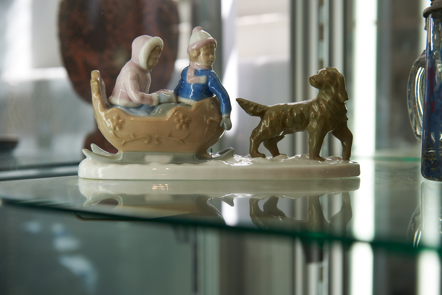A PORCELAIN SCULPTURE OF KIDS ON SLEIGH (21 CM W), LEONARD JOEL LOCAL DELIVERY SIZE: SMALL
