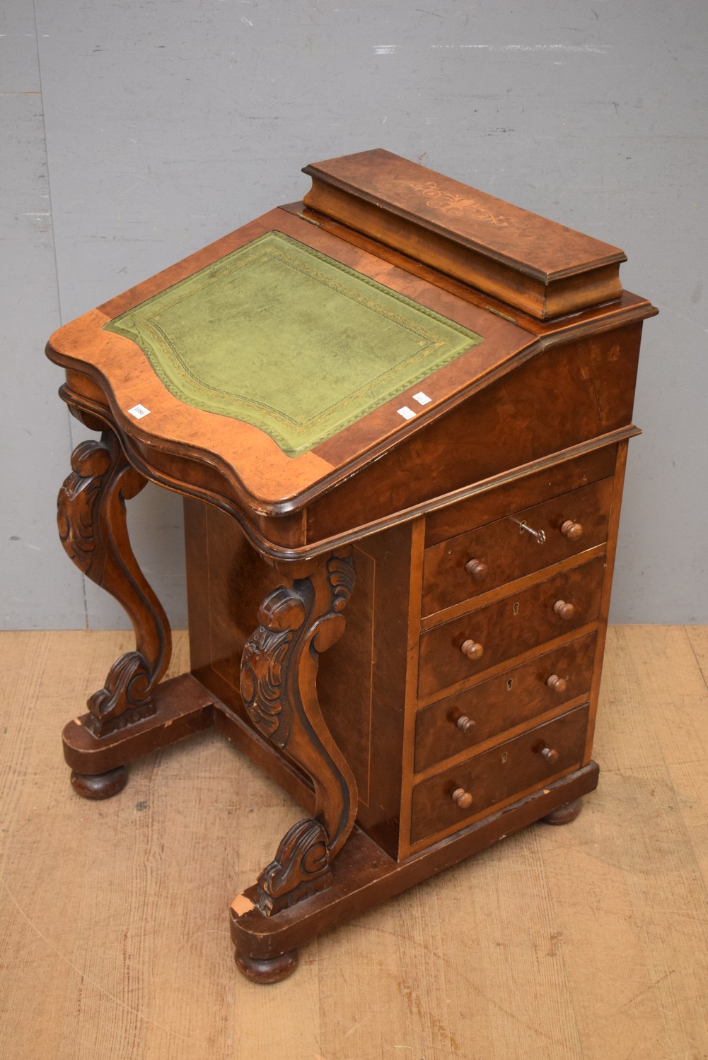 A VICTORIAN BURR WALNUT DAVENPORT (A/F) (88H x 55W x 61D CM) (LEONARD JOEL DELIVERY SIZE: LARGE)