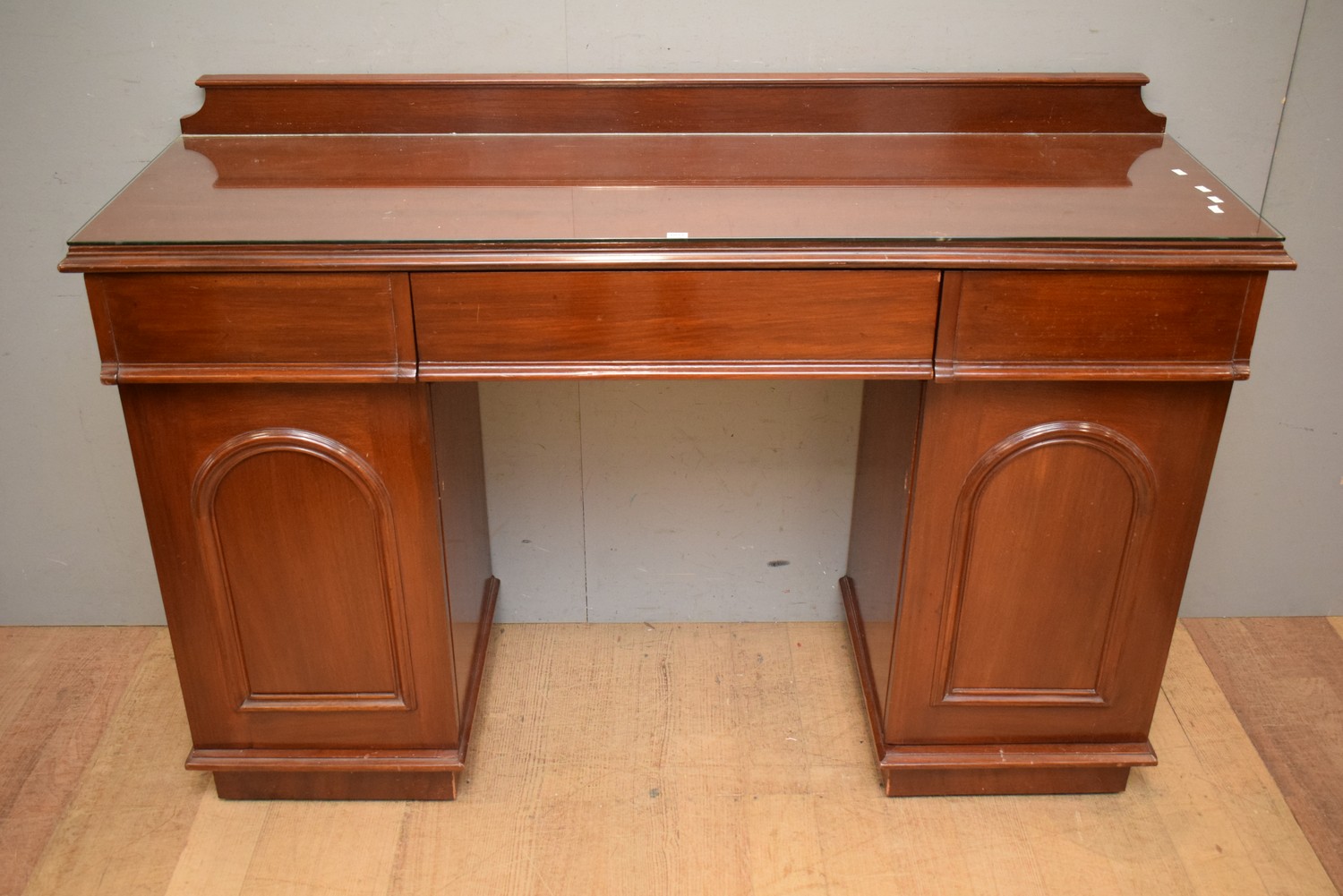 A DOUBLE PEDESTAL SIDEBOARD (105H x 154W x 50D CM) (PLEASE NOTE THIS HEAVY ITEM MUST BE REMOVED BY CARRIERS AT THE CUSTOMER'S EXPENSE. LEONARD JOEL STAFF CANNOT ASSIST CARRYING THIS ITEM) (X-LARGE ITEM)