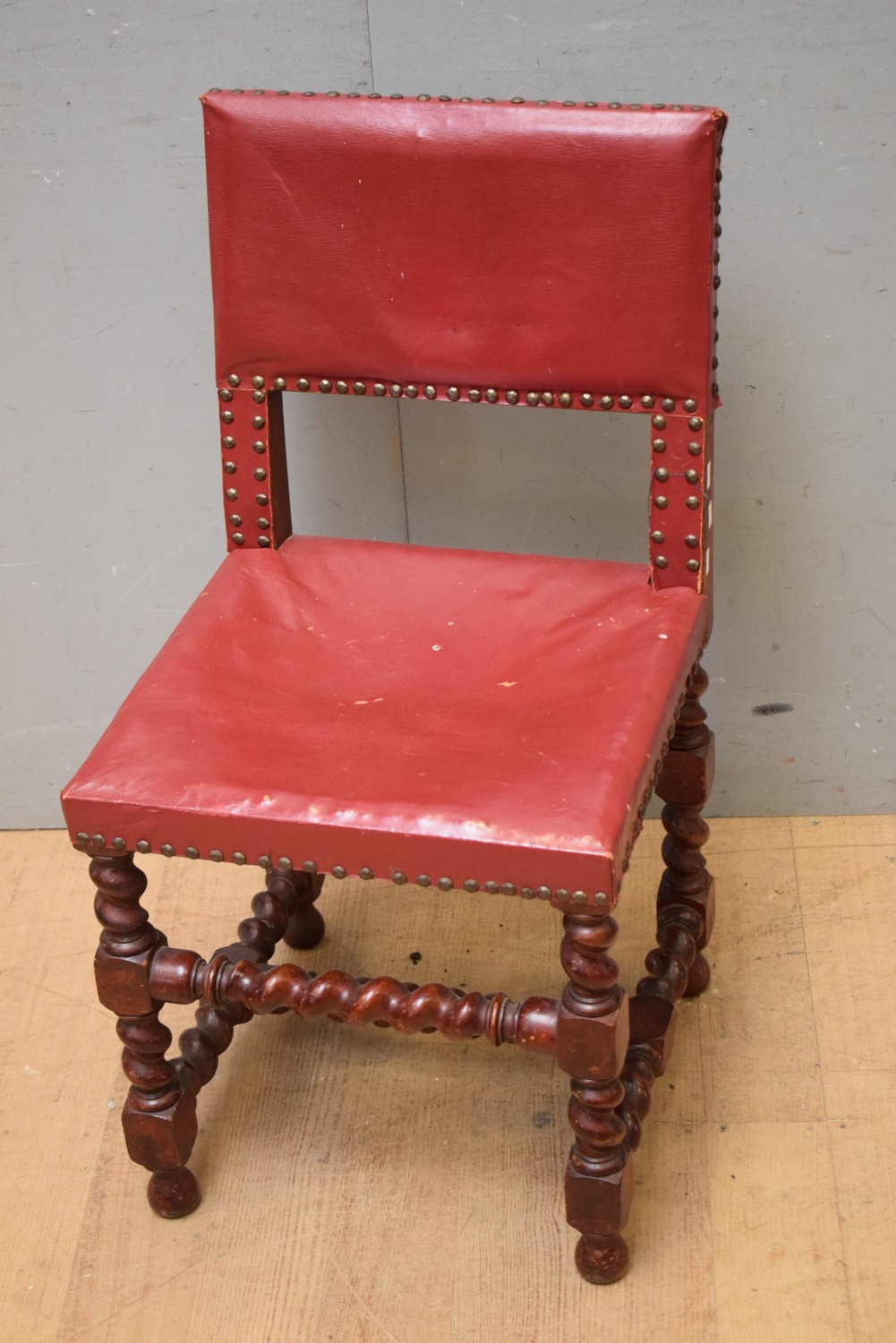 A SMALL 19th CENTURY RED LEATHER UPHOLSTERED CHAIR (A/F) (85H X 43W X 40D CM) (LEONARD JOEL DELIVERY SIZE: SMALL)