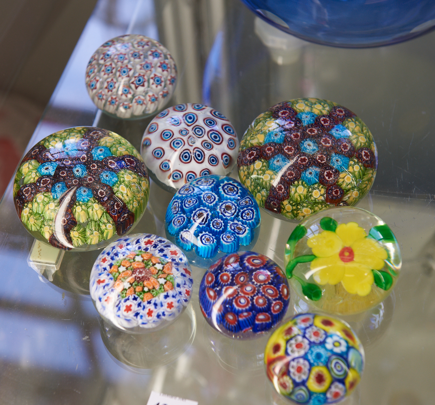 A GROUP OF NINE PAPERWEIGHTS INCLUDING MILLEFIORI , LEONARD JOEL LOCAL DELIVERY SIZE: SMALL