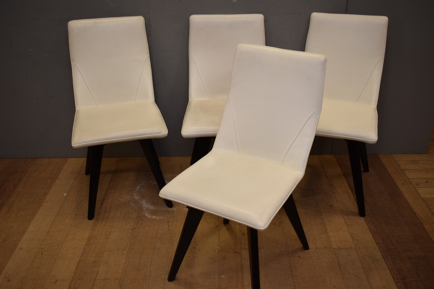 A SET OF FOUR CONTEMPORARY DINING CHAIRS (A/F) (91H X 47W X 58D CM) (LEONARD JOEL DELIVERY SIZE: LARGE)