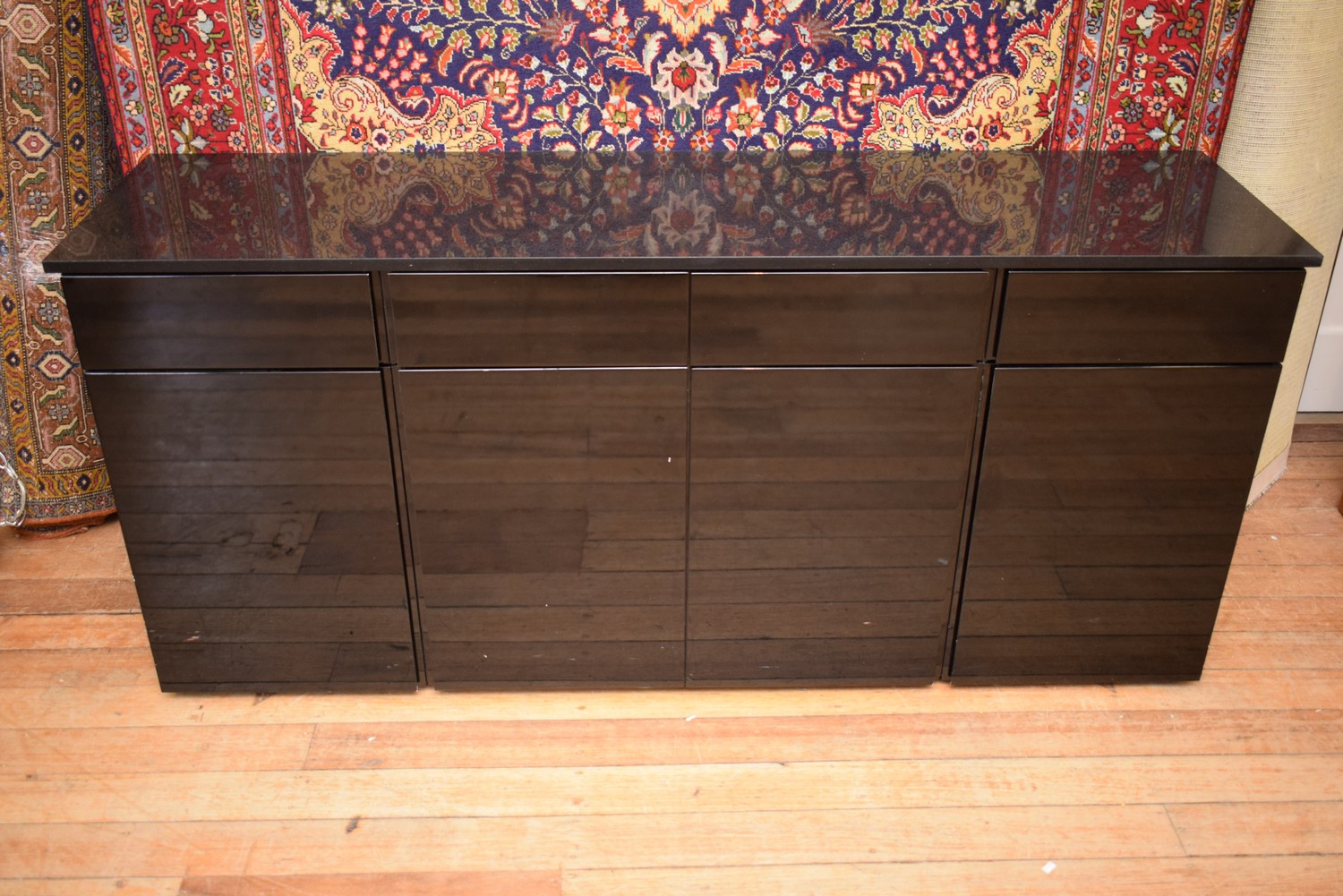 A CONTEMPORARY BLACK LAMINATE SIDEBOARD (82H x 184W x 48D CM) (PLEASE NOTE THIS HEAVY ITEM MUST BE REMOVED BY CARRIERS AT THE CUSTOMER'S EXPENSE. LEONARD JOEL STAFF CANNOT ASSIST CARRYING THIS ITEM) (X-LARGE ITEM)