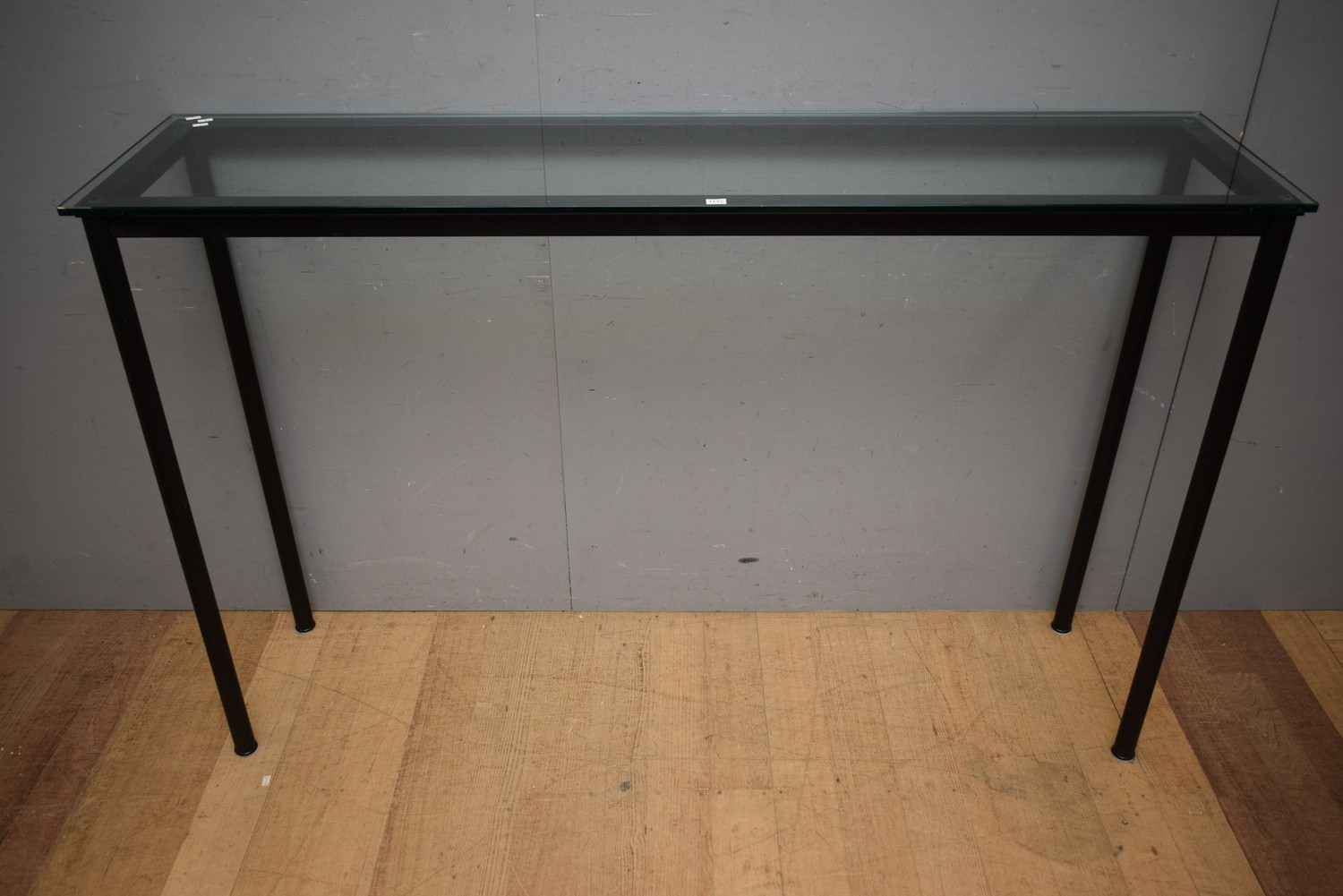 A GLASS TOPPED CONSOLE TABLE (102H x 160W x 40D CM) (LEONARD JOEL DELIVERY SIZE: LARGE)