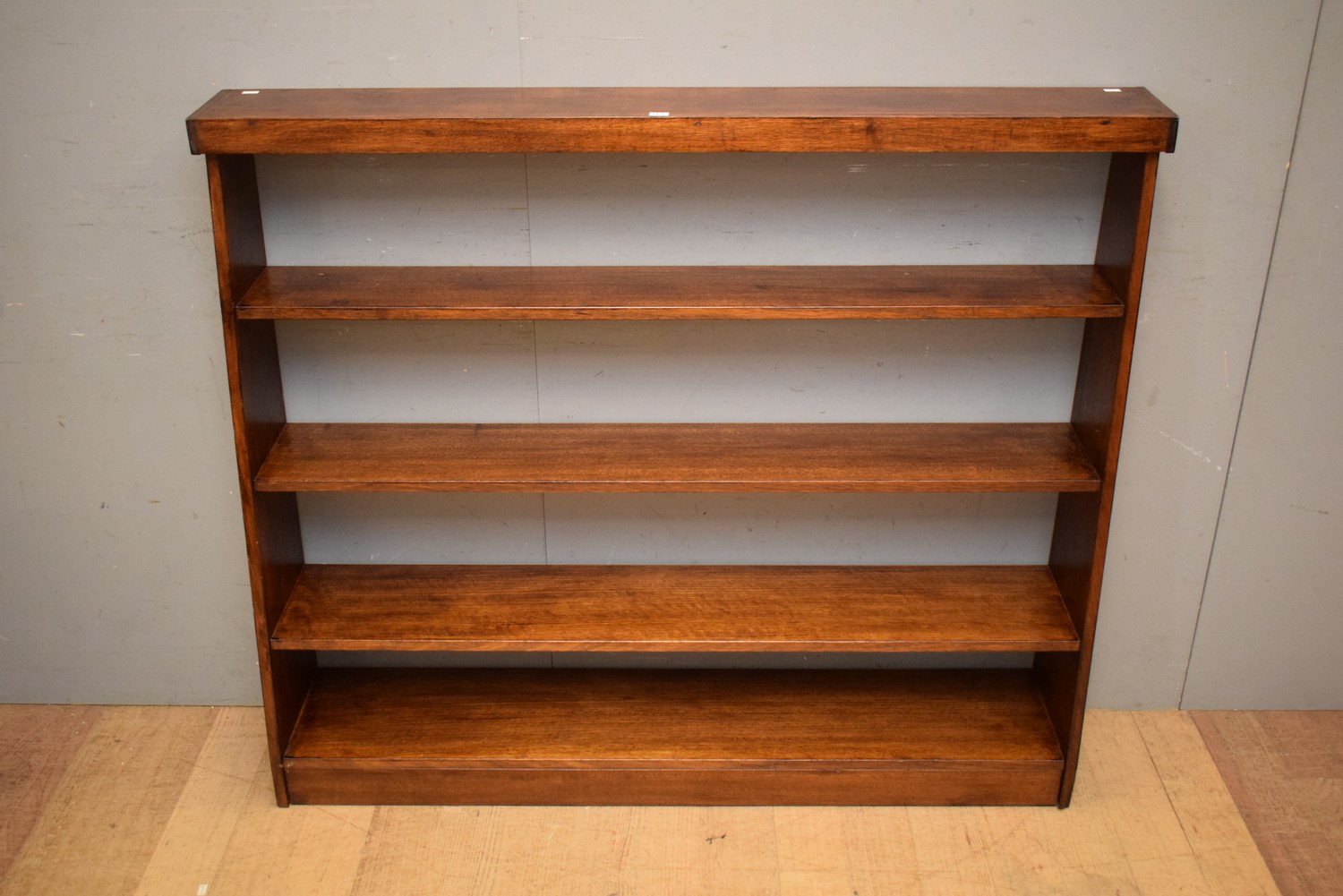 A SOLID OAK TAPERING OPEN BOOKSHELF (110H x 130W x 25D CM) (LEONARD JOEL DELIVERY SIZE: LARGE)