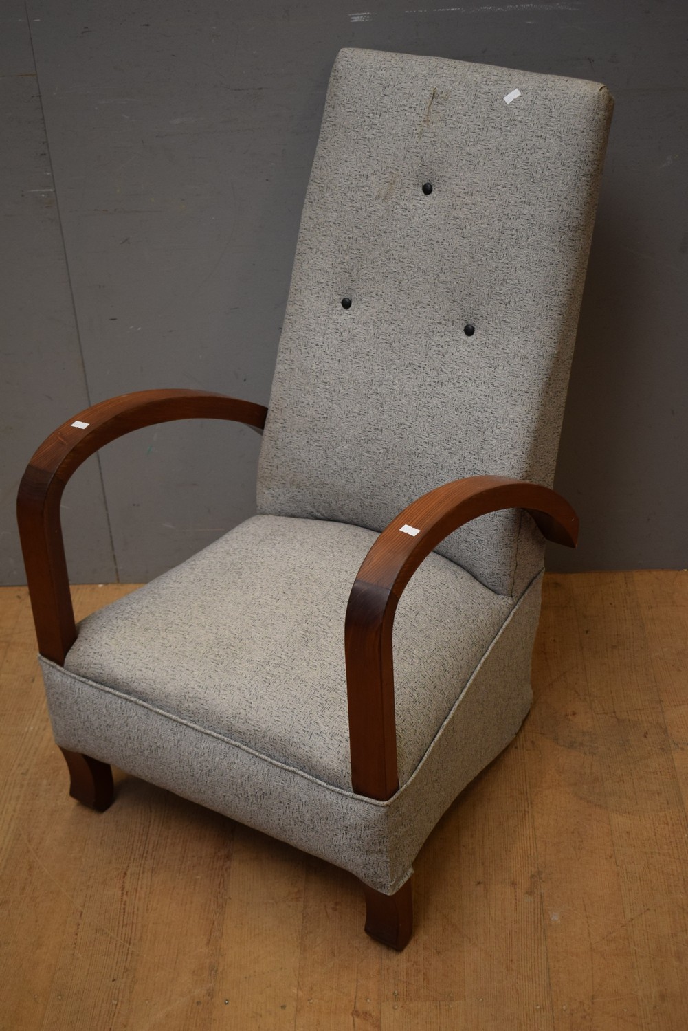 A 1960S SPOTTED GREY VINYL ROCKING ARMCHAIR (A/F) (93H X 56W X 70D CM) (LEONARD JOEL DELIVERY SIZE: MEDIUM)