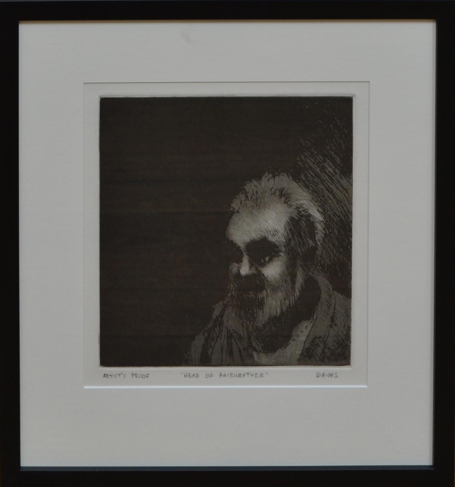 LAWRENCE DAWS, HEAD OF FAIRWEATHER 1973, ETCHING AND AQUATINT, SIGNED UNDER IMAGE, 27 X 25CM, FRAME SIZE: 49 X 45CM, LEONARD JOEL DELIVERY SIZE: SMALL