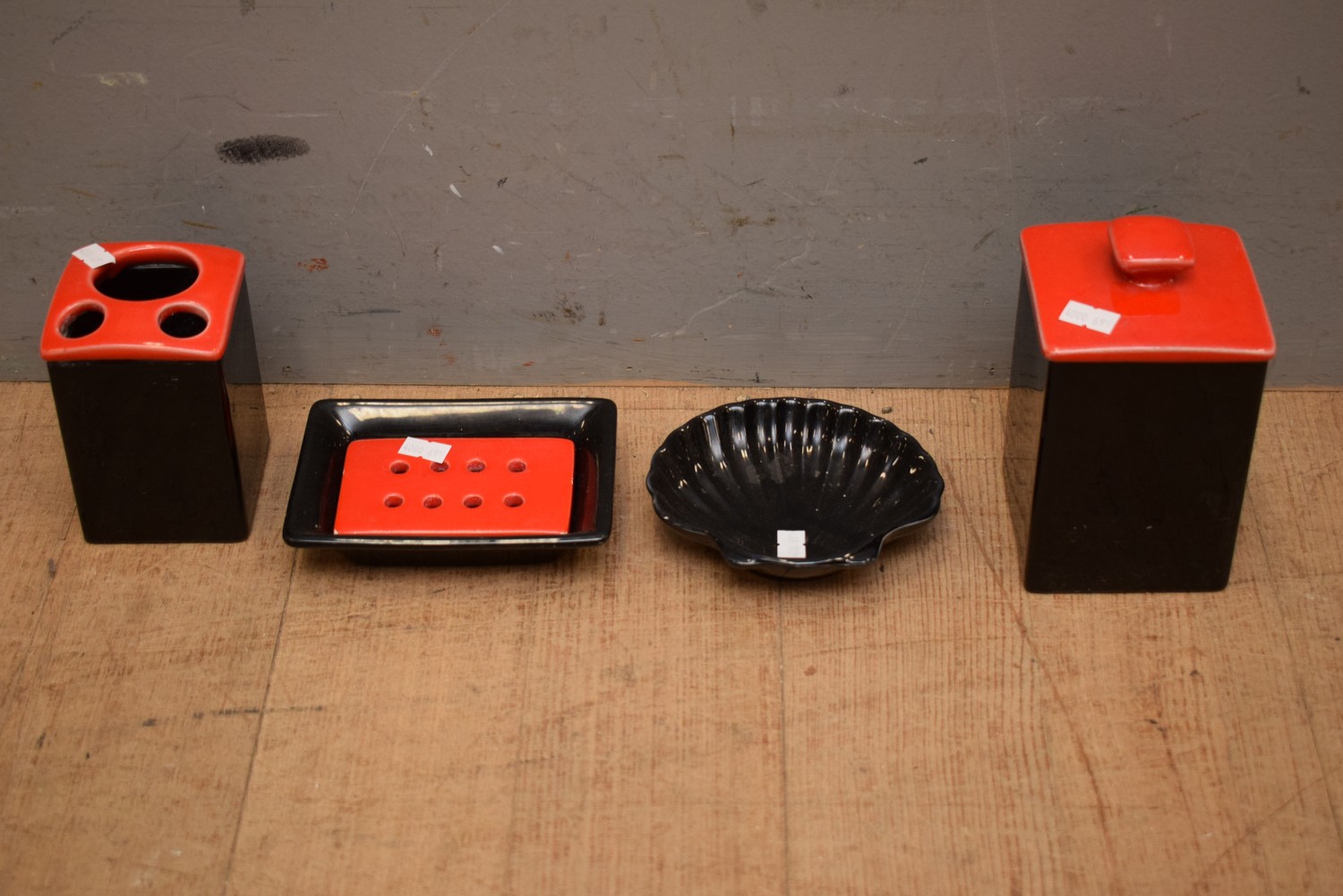 A MID-CENTURY FOUR PIECE BLACK AND RED ITALIAN DESIGN BATHROOM SET, NICHOLSON (LEONARD JOEL DELIVERY SIZE: SMALL)