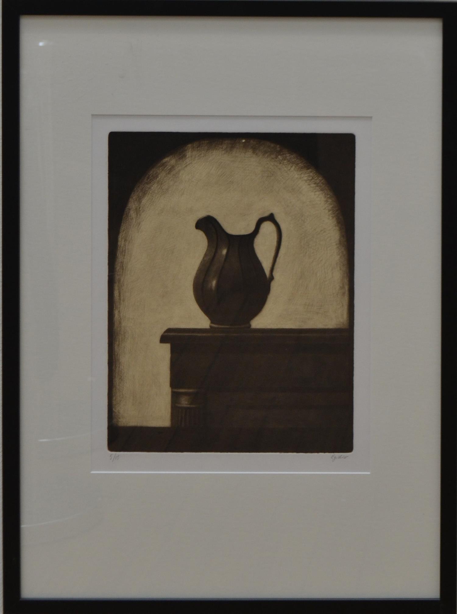 GRAEME PEEBLES, EGIDIO - JUG ON MANTLEPIECE, MEZZOTINT 5/15, SIGNED WITH TITLE, 39 X 30CM, FRAME SIZE: 76 X 56CM, LEONARD JOEL DELIVERY SIZE: MEDIUM