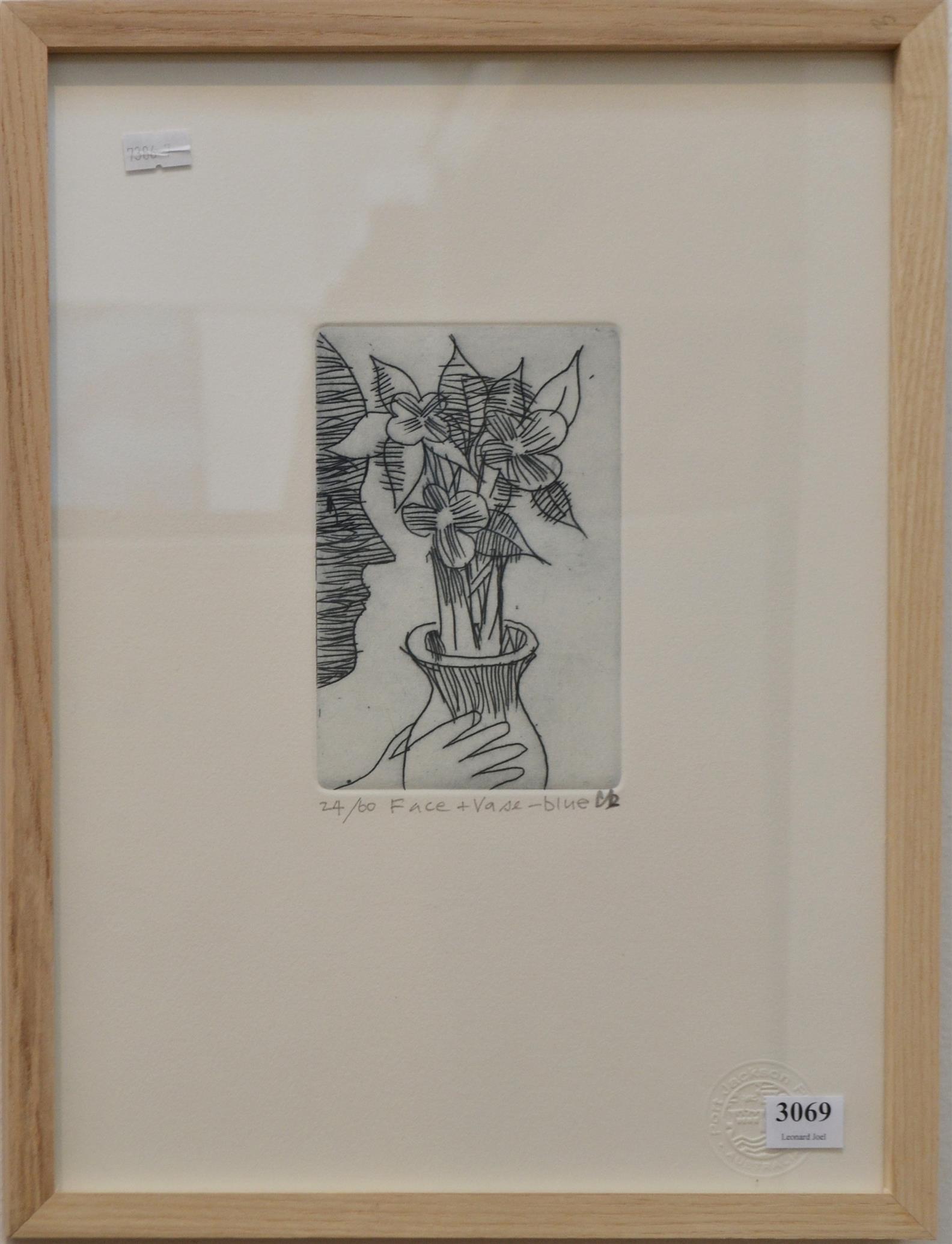 CHARLES BLACKMAN, FACE + VASE - BLUE, ETCHING 24/60, 15 X 10CM, LEONARD JOEL DELIVERY SIZE: SMALL