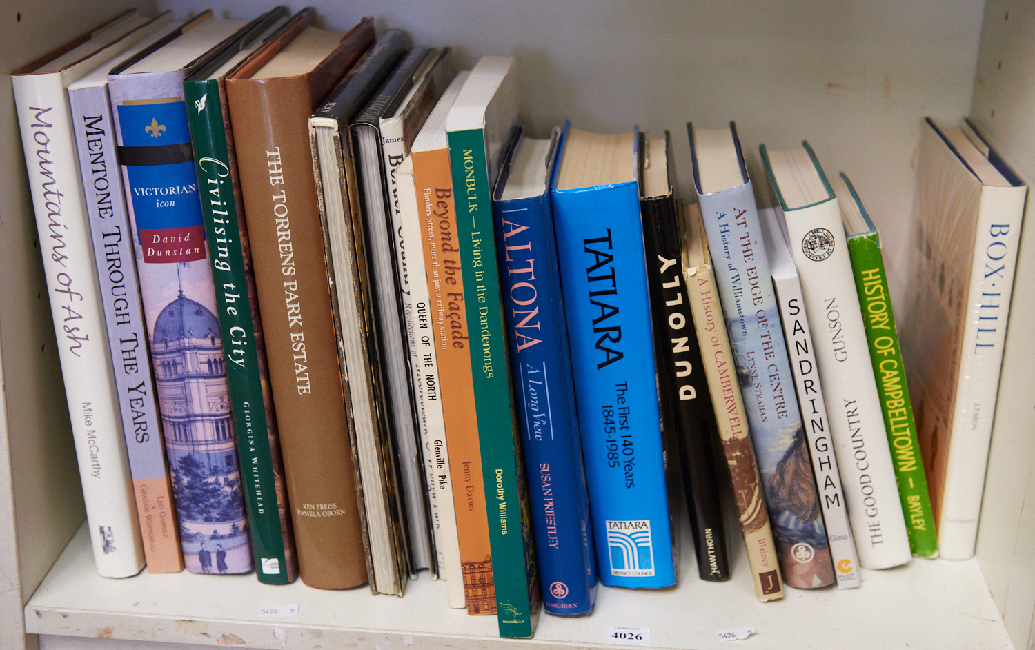 A SHELF OF LOCAL HISTORY INCLUDING BLAMEY, A HISTORY OF CAMBERWELL, ALTONA AND PAMELA OBORN 'THE TORRENS PARK ESTATE' SIGNED 154/1000, LEONARD JOEL LOCAL DELIVERY SIZE: SMALL