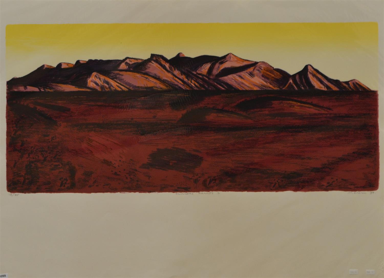 JEFF MAKIN, FLINDERS RANGES I 1994, SCREENPRINT 13/85, 43 X 94CM, UNFRAMED BUT BACKED AND WRAPPED FOR PROTECTION, LEONARD JOEL DELIVERY SIZE: MEDIUM