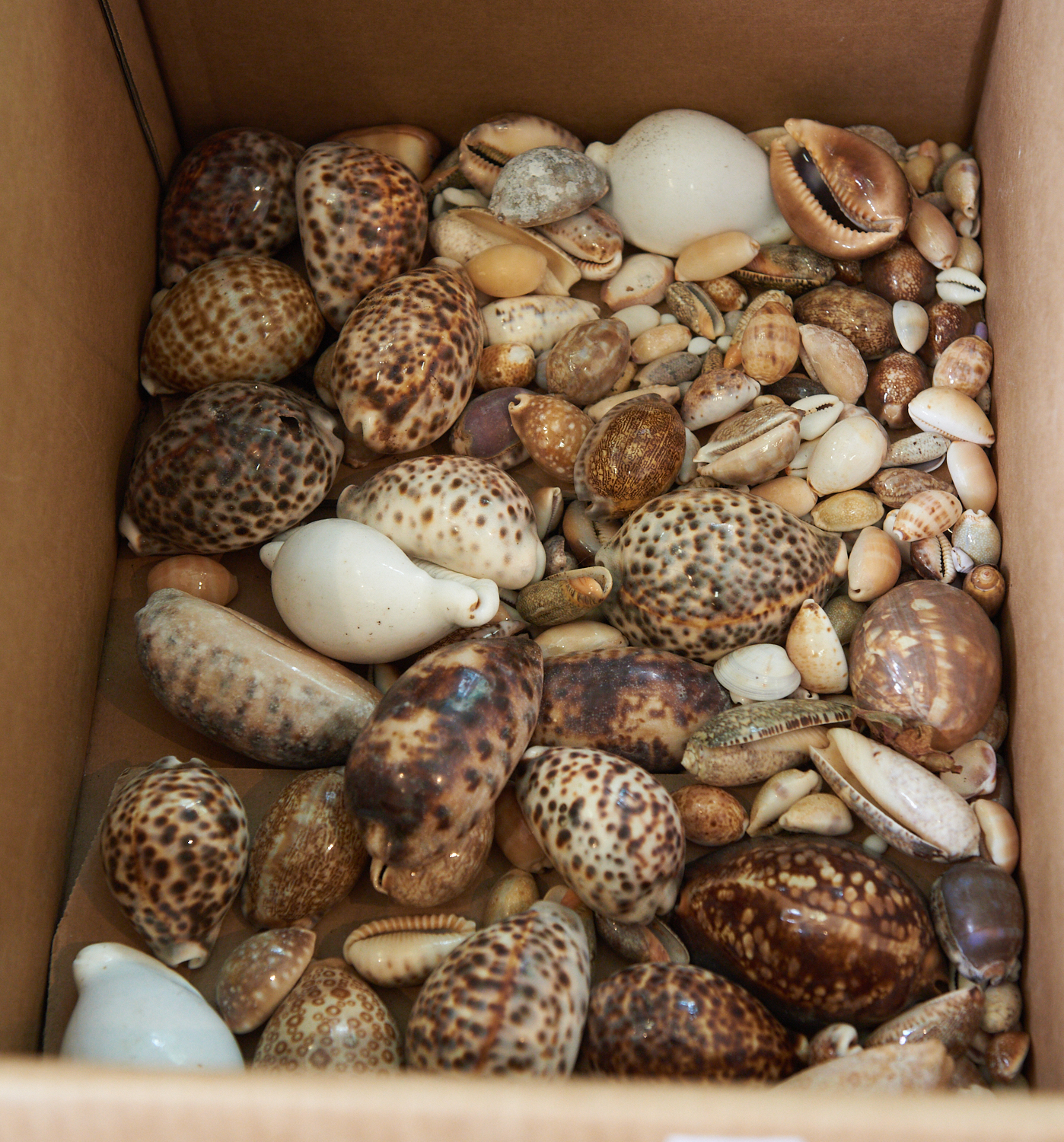 A BOX OF COWRIE SHELLS, LEONARD JOEL LOCAL DELIVERY SIZE: SMALL