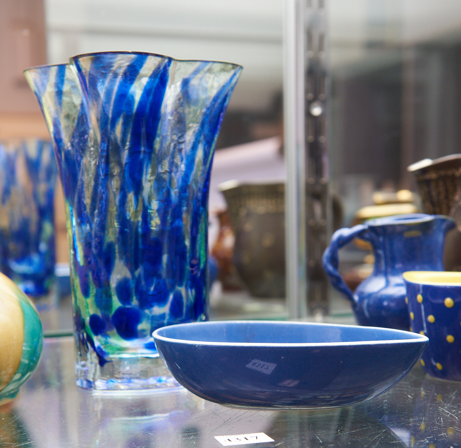 A SWEDISH SEA GLASBRUK VASE BY RENATE STOCK PAULSSON AND A TEARDROP SHAPED PORCELAIN BOWL BY GUSTAVSBERG (21 CM H), LEONARD JOEL LOCAL DELIVERY SIZE: SMALL