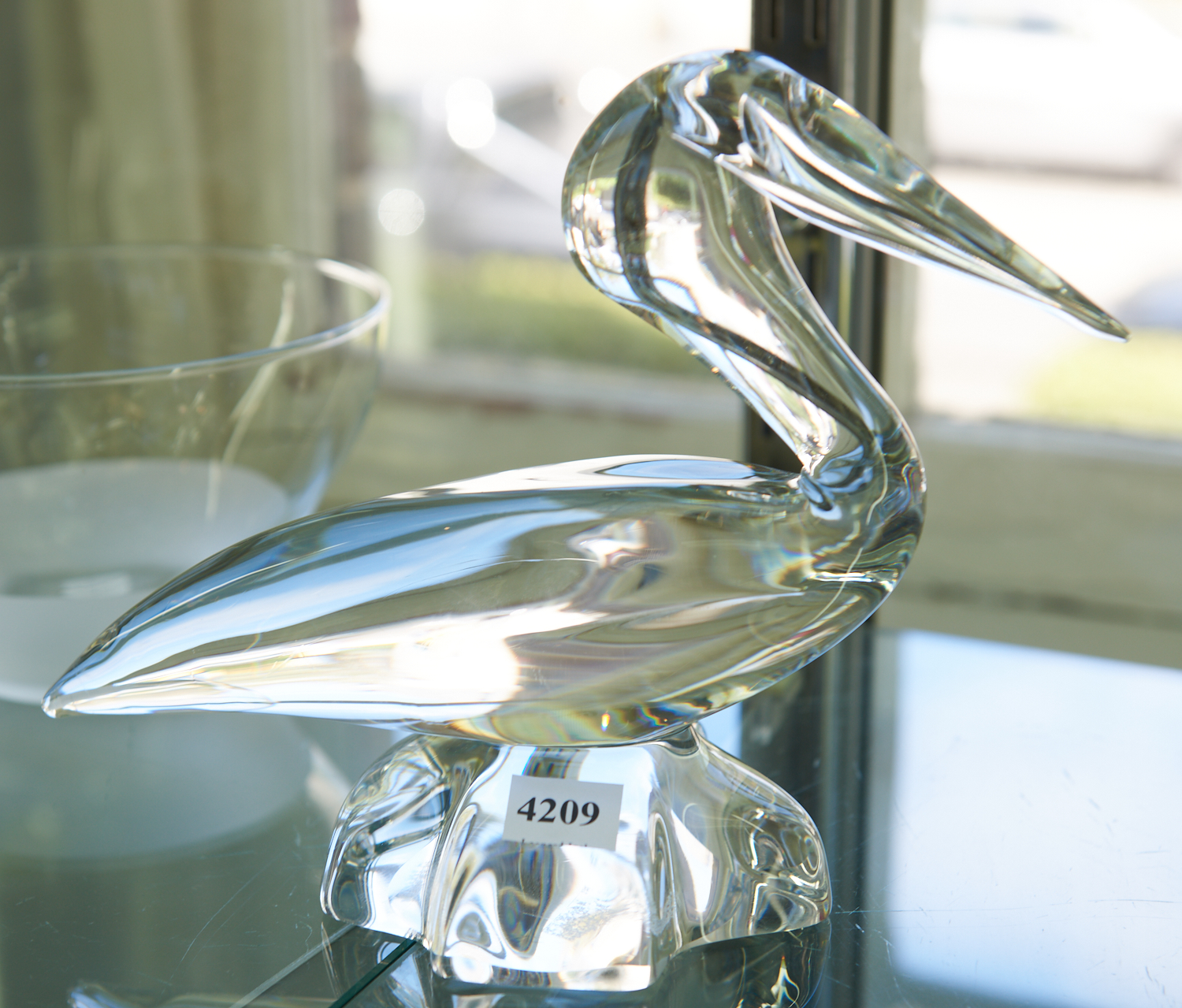 A FRENCH SIGNED CRYSTAL PELICAN BY DAUM (22 CM H), LEONARD JOEL LOCAL DELIVERY SIZE: SMALL