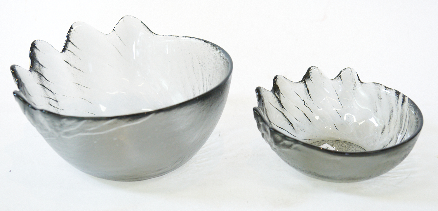 TWO ENGLISH WEDGWOOD SMOKY GREY CRYSTAL WAVE BOWLS BY ANITA HARRIS (26 CM D), LEONARD JOEL LOCAL DELIVERY SIZE: SMALL