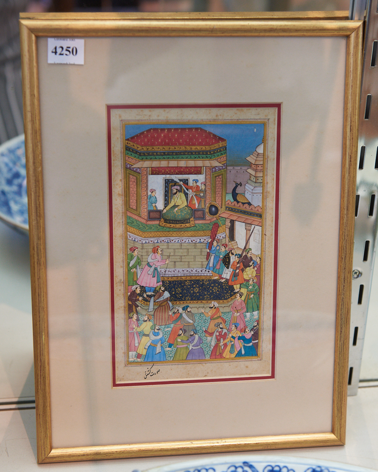 A NINETEENTH CENTURY INDIAN MUGHAL HAND-PAINTED MINIATURE ON PAPER, GILDED, SIGNED AND FRAMED (IMAGE SIZE 19 X 11 CM), LEONARD JOEL LOCAL DELIVERY SIZE: SMALL