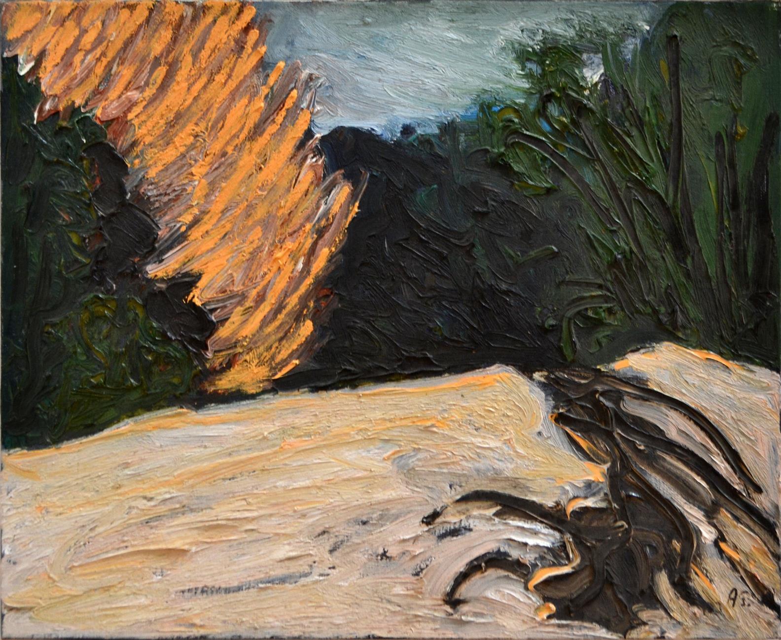 ANDREW SOUTHALL, FORESHORE INVERLOCH 1984, OIL ON LINEN, 46 X 56 CM, LEONARD JOEL DELIVERY SIZE: SMALL