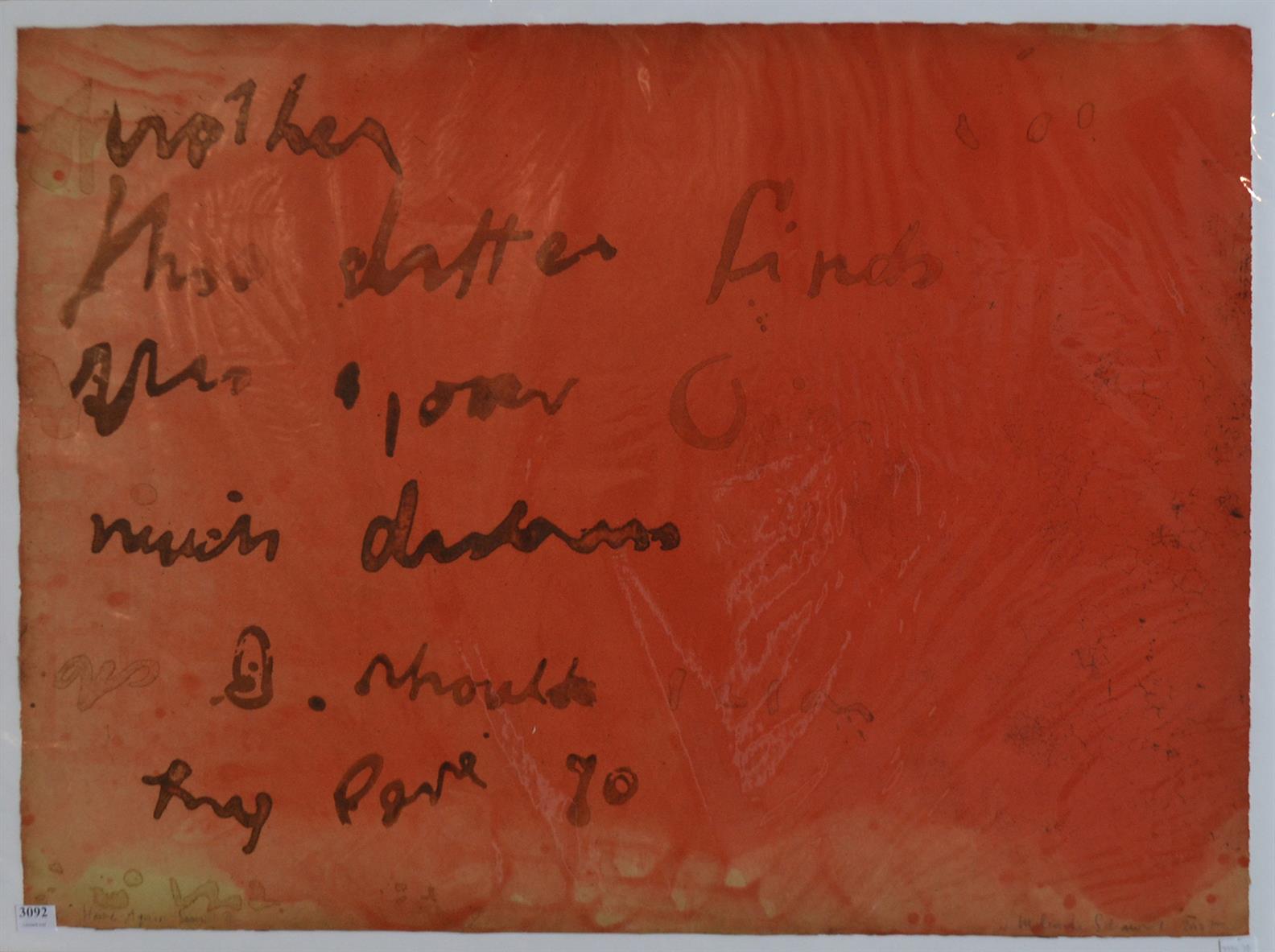 MELINDA SCHAWEL, HOME AGAIN SOON II 2007, ETCHING 4/25, 57 X 75CM, UNFRAMED BUT BACKED AND WRAPPED FOR PROTECTION, LEONARD JOEL DELIVERY SIZE: SMALL