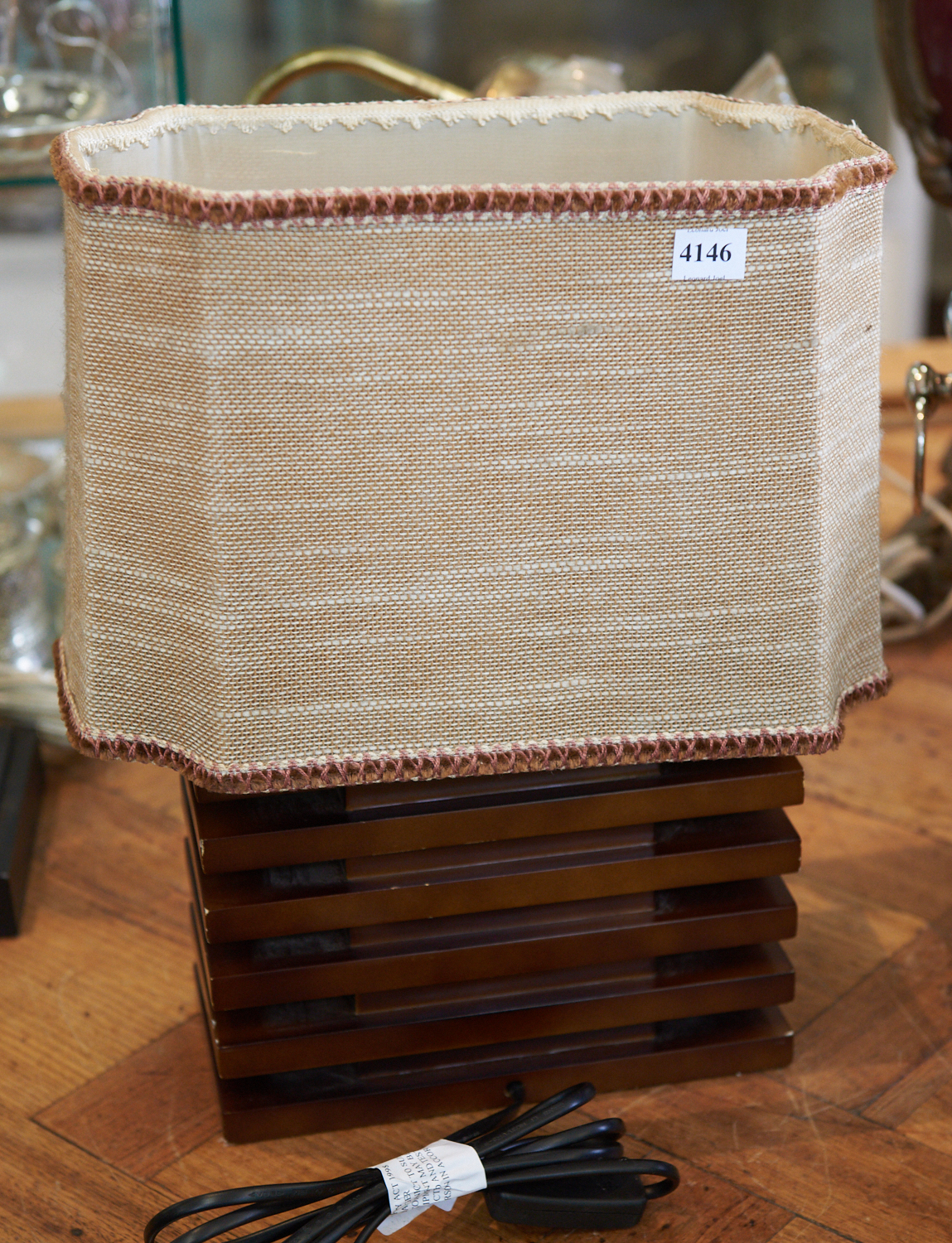A MID-CENTURY STYLE WOODEN LAMP H.39CM, LEONARD JOEL LOCAL DELIVERY SIZE: SMALL
