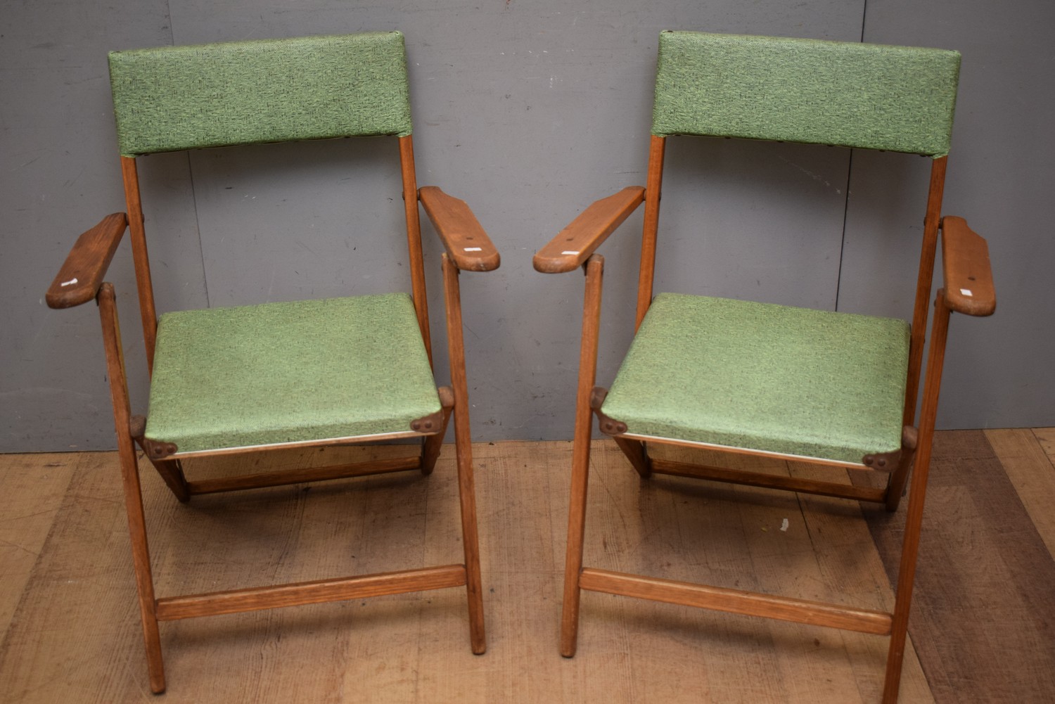 TWO AUSTRALIAN GAIRS GOLD MEDAL FOLDING CHAIRS WITH ORIGINAL LABELS AND UPHOLSTERY (A/F) (78H X 60W X 57D CM) (LEONARD JOEL DELIVERY SIZE: MEDIUM)