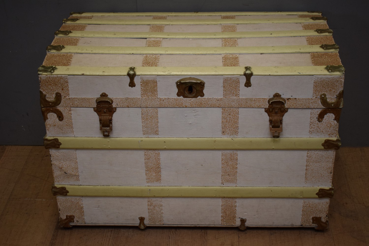 A RUSTIC PAINTED TRUNK (A/F) (64H X 92W X 56D CM) (LEONARD JOEL DELIVERY SIZE: LARGE)