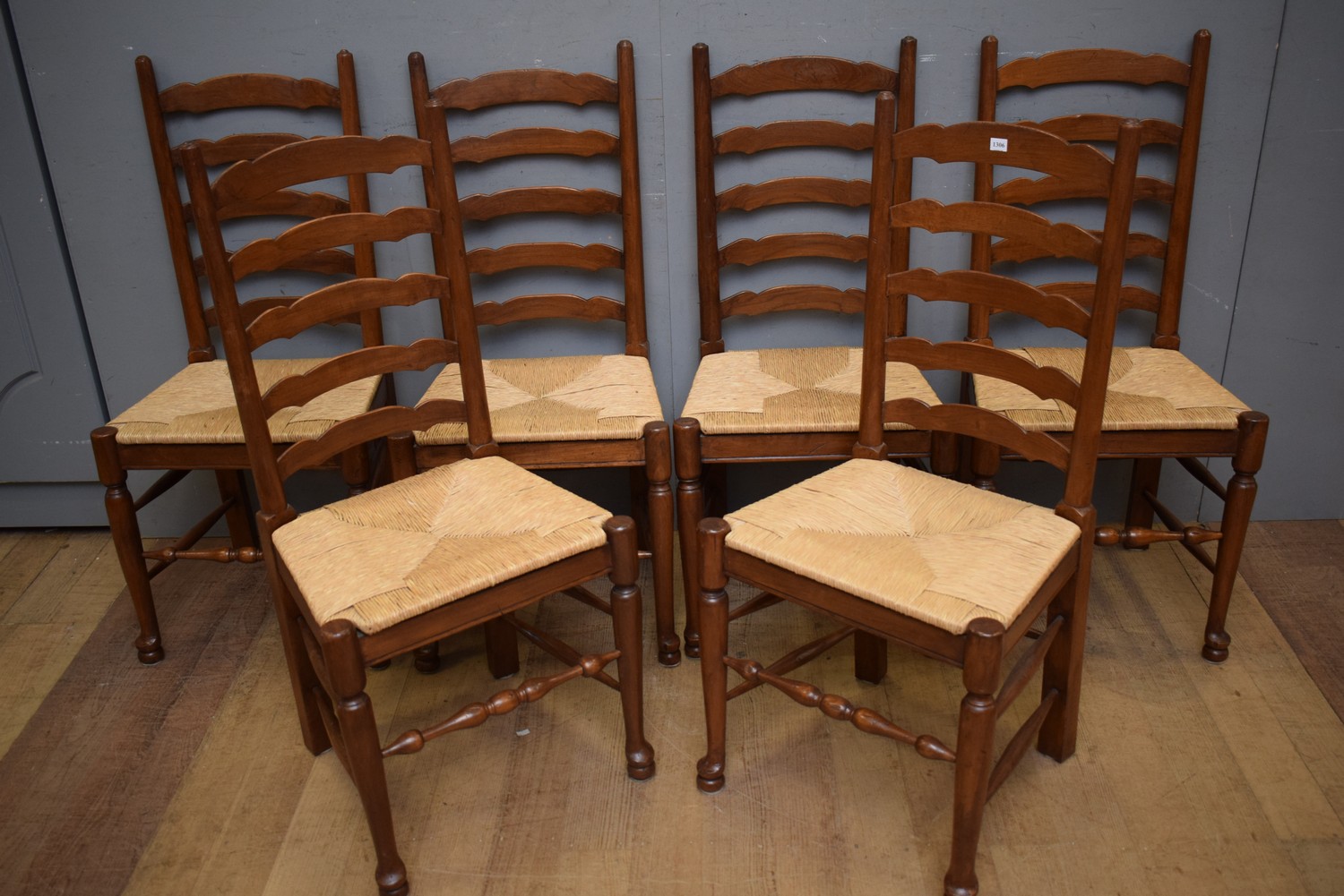 A SET OF SIX LADDERBACK CHAIRS WITH RUSHED SEATING (103H X 50W X 46D CM) (LEONARD JOEL DELIVERY SIZE: LARGE)