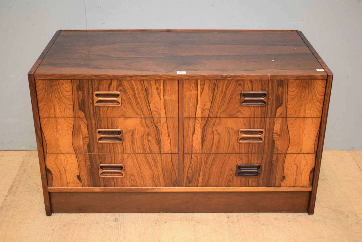 A DANISH ROSEWOOD SIX DRAWER CHEST (49H x 87W x 43D CM) (LEONARD JOEL DELIVERY SIZE: LARGE)