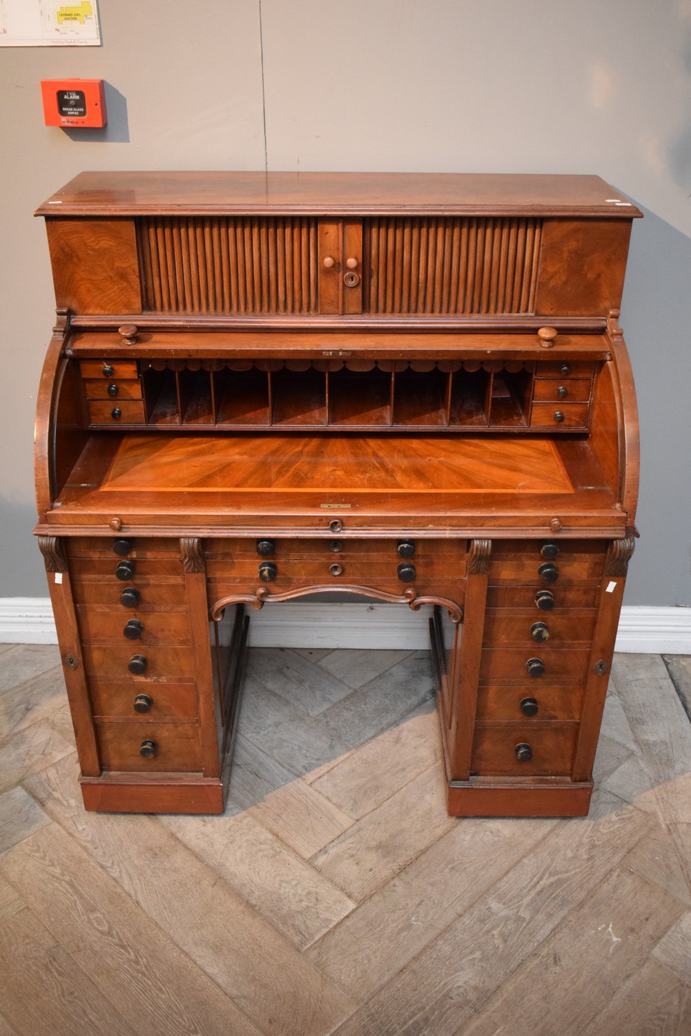 A FLAME MAHOGANY VICTORIAN WRITING BUREAU (121H x 105W x 62D CM) (PLEASE NOTE THIS HEAVY ITEM MUST BE REMOVED BY CARRIERS AT THE CUSTOMER'S EXPENSE. LEONARD JOEL STAFF CANNOT ASSIST CARRYING THIS ITEM) (X-LARGE ITEM)
