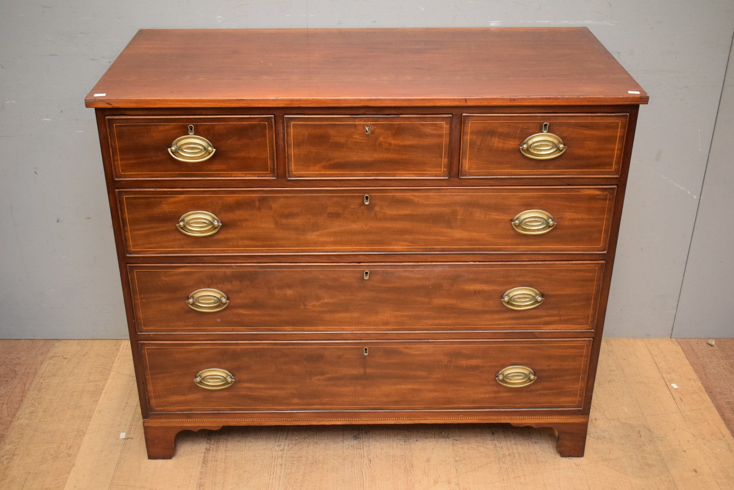 A GEORGIAN FLAME MAHOGANY SIX DRAWER CHEST (97H x 114W x 53D CM) (LEONARD JOEL DELIVERY SIZE: LARGE)