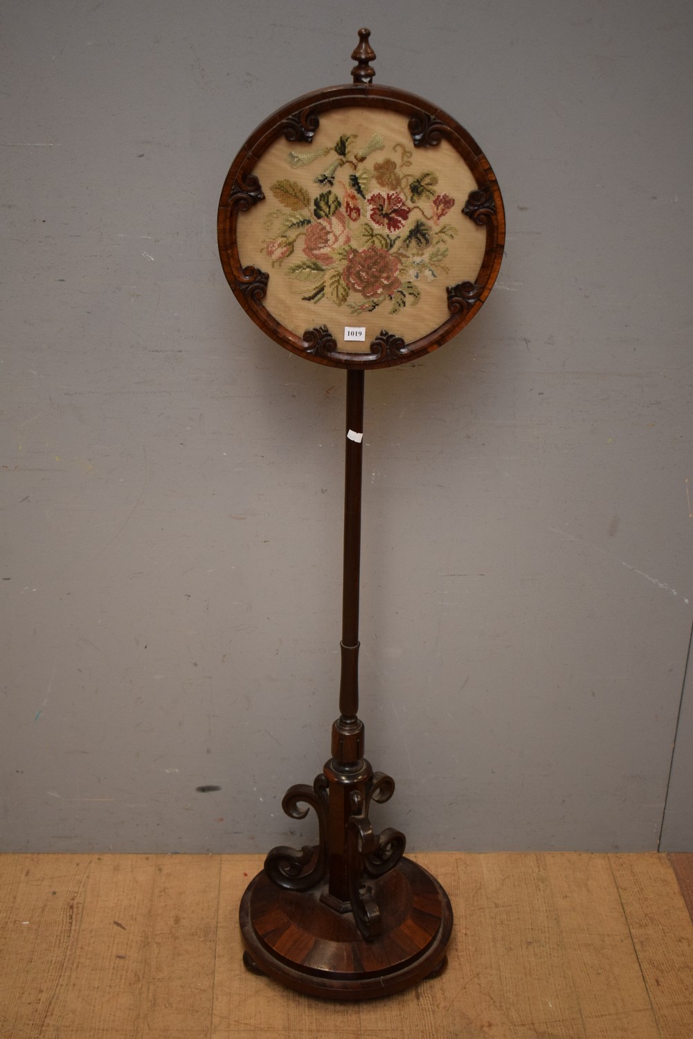 A VICTORIAN FLAME MAHOGANY EMBROIDERED STAND (136H CM) (LEONARD JOEL DELIVERY SIZE: MEDIUM)