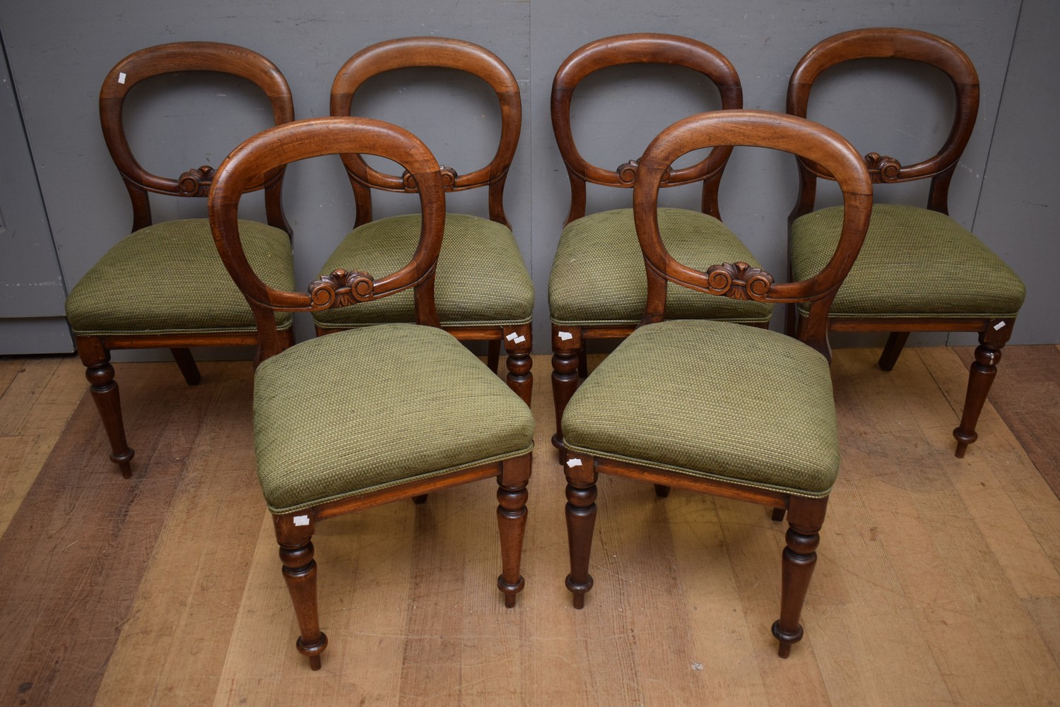 A SET OF SIX VICTORIAN CEDAR BALLOON BACK DINING CHAIRS (84H x 47W x 50D CM) (LEONARD JOEL DELIVERY SIZE: LARGE)