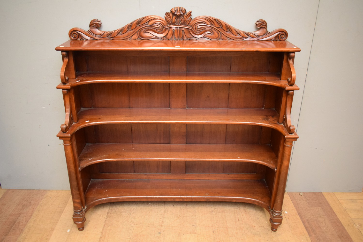 AN ANTIQUE CARVED TIMBER BOOKCASE (143H x 140W x 73D CM) (LEONARD JOEL DELIVERY SIZE: LARGE)