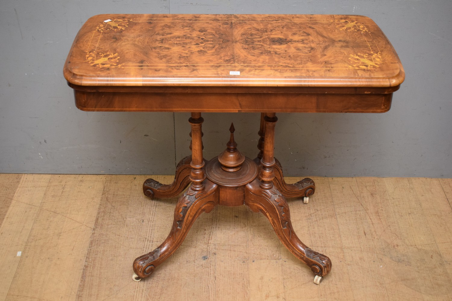 A TIMBER INLAID GAMES TABLE WITH BIRDCAGE BASE (A/F) (74H x 92W x 45D CM) (LEONARD JOEL DELIVERY SIZE: MEDIUM)