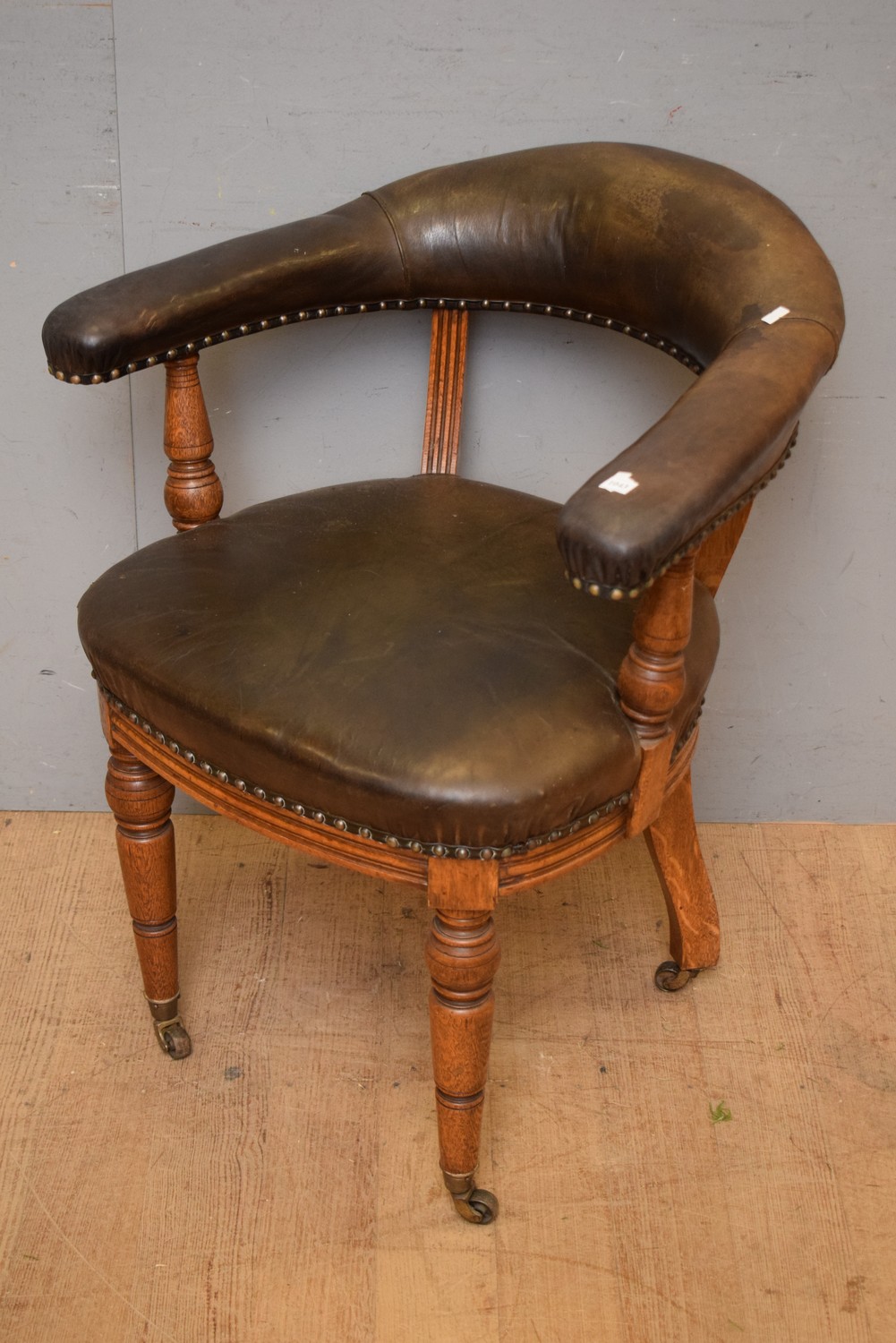 A LEATHER DESK CHAIR ON CASTORS (80H x 67W x 65D CM) (LEONARD JOEL DELIVERY SIZE: MEDIUM)