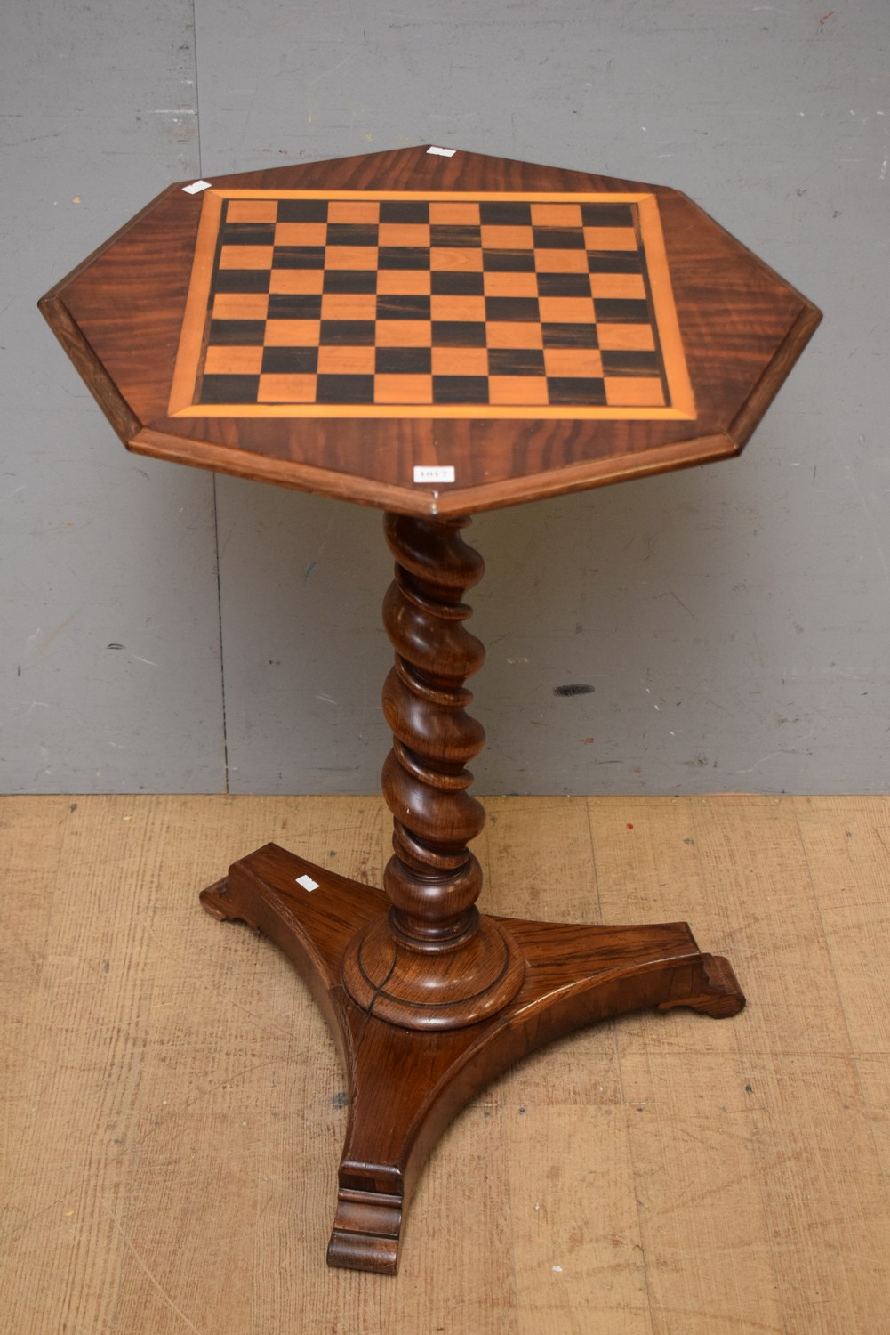 A BARLEY TWIST TIMBER INLAID GAMES TABLE (75H x 54W x 54D CM) (LEONARD JOEL DELIVERY SIZE: MEDIUM)