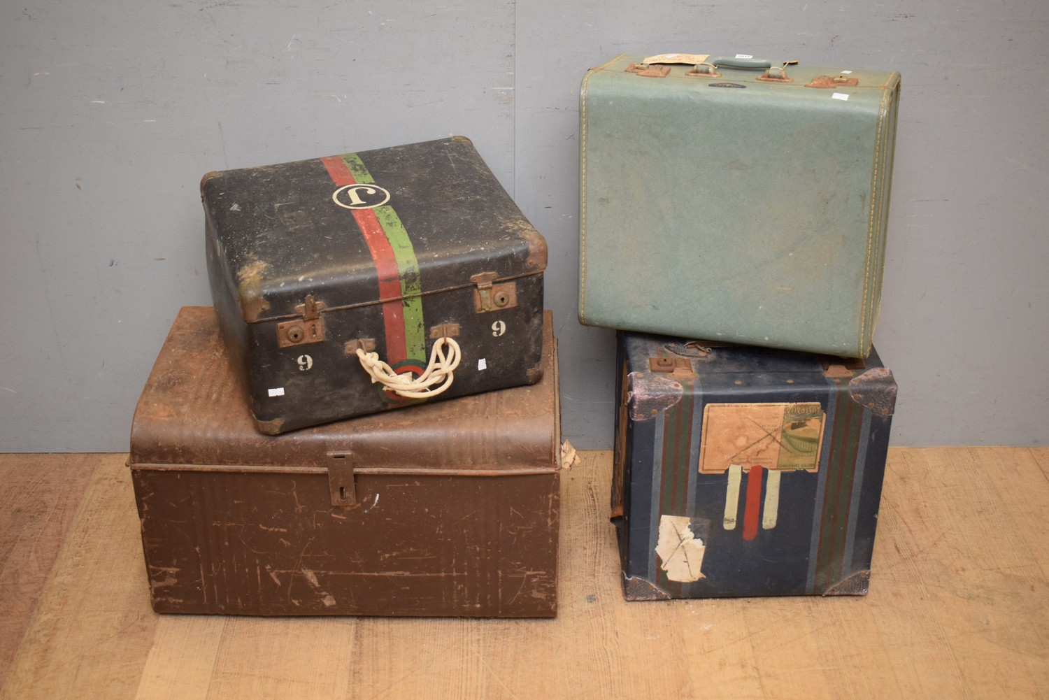 A COLLECTION OF FOUR STORAGE TRUNKS (LARGEST 40H x 67W x 43D CM) (LEONARD JOEL DELIVERY SIZE: MEDIUM)