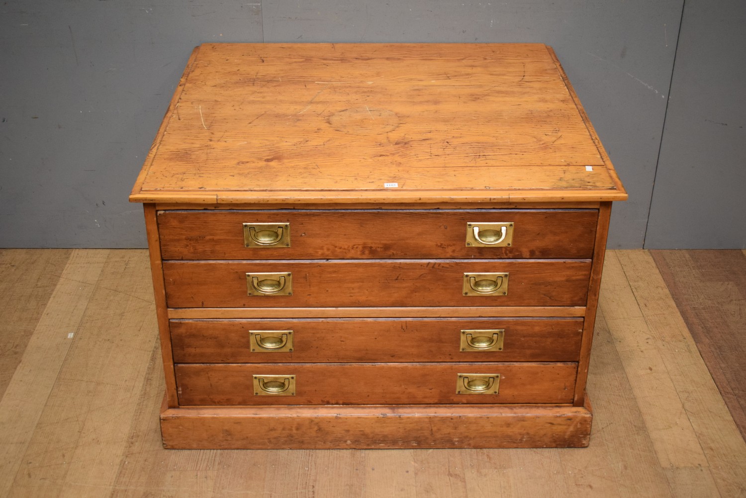 A FOUR DRAWER SET OF PLAN DRAWERS (65H x 96W x 87D CM) (PLEASE NOTE THIS HEAVY ITEM MUST BE REMOVED BY CARRIERS AT THE CUSTOMER'S EXPENSE. LEONARD JOEL STAFF CANNOT ASSIST CARRYING THIS ITEM) (X-LARGE ITEM)