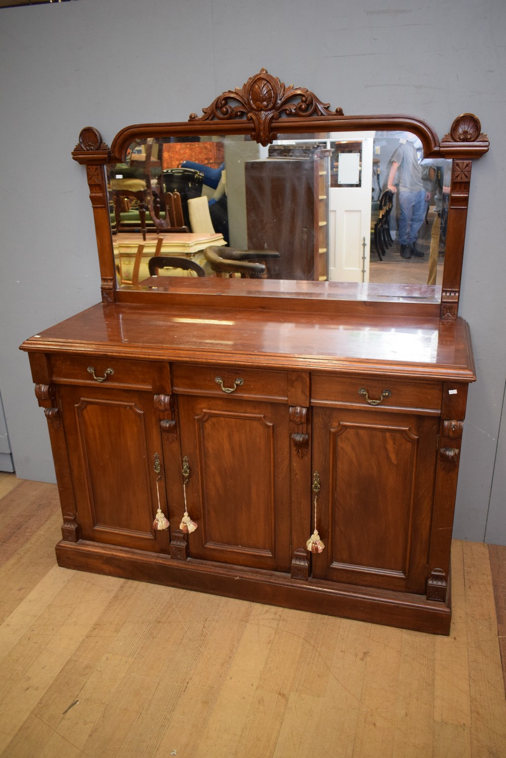 A SUBSTANTIAL CARVED TIMBER THREE DRAWER SIDEBOARD (180H x 154W x 58D CM) (PLEASE NOTE THIS HEAVY ITEM MUST BE REMOVED BY CARRIERS AT THE CUSTOMER'S EXPENSE. LEONARD JOEL STAFF CANNOT ASSIST CARRYING THIS ITEM) (X-LARGE ITEM)