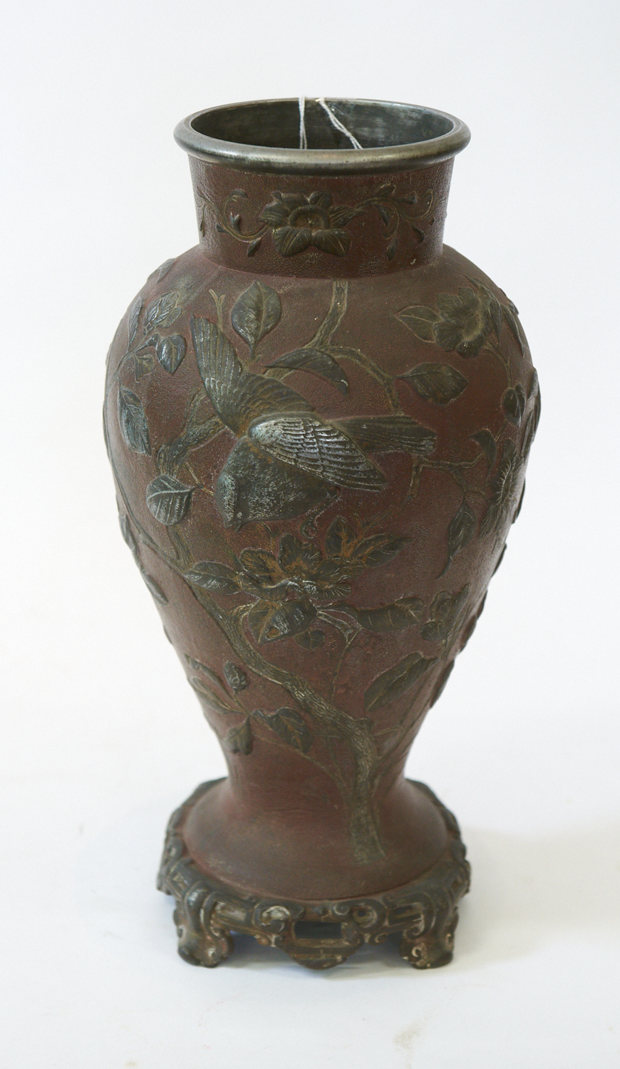A BRONZE VASE WITH FINE DECORATION (40 CM H), LEONARD JOEL LOCAL DELIVERY SIZE: SMALL